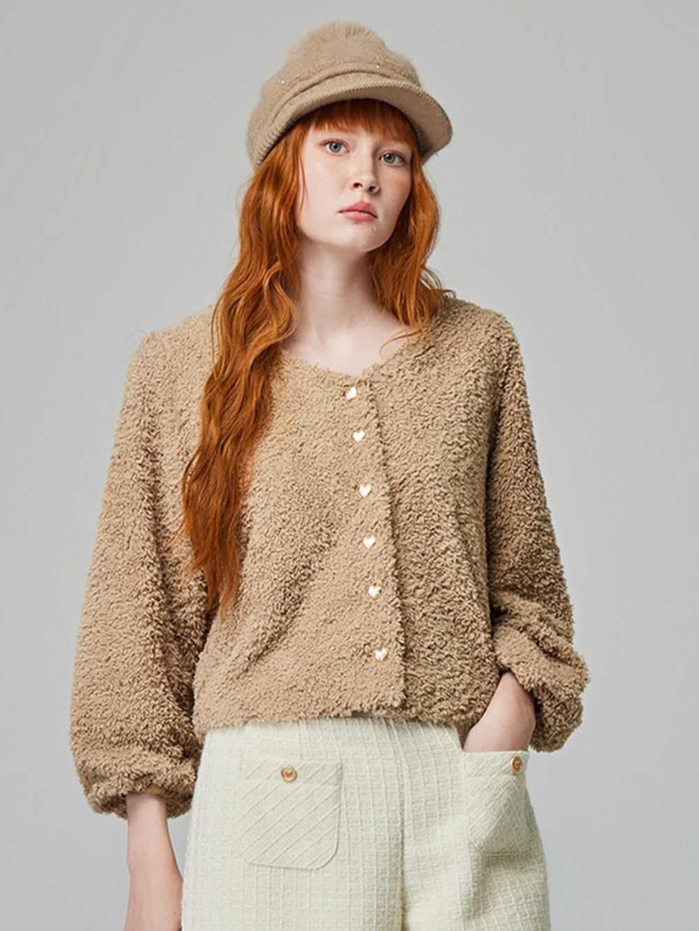 *可愛金屬愛心釦 *柔軟親膚毛毛面料 *日常百搭款 *可當上衣或是外套穿搭