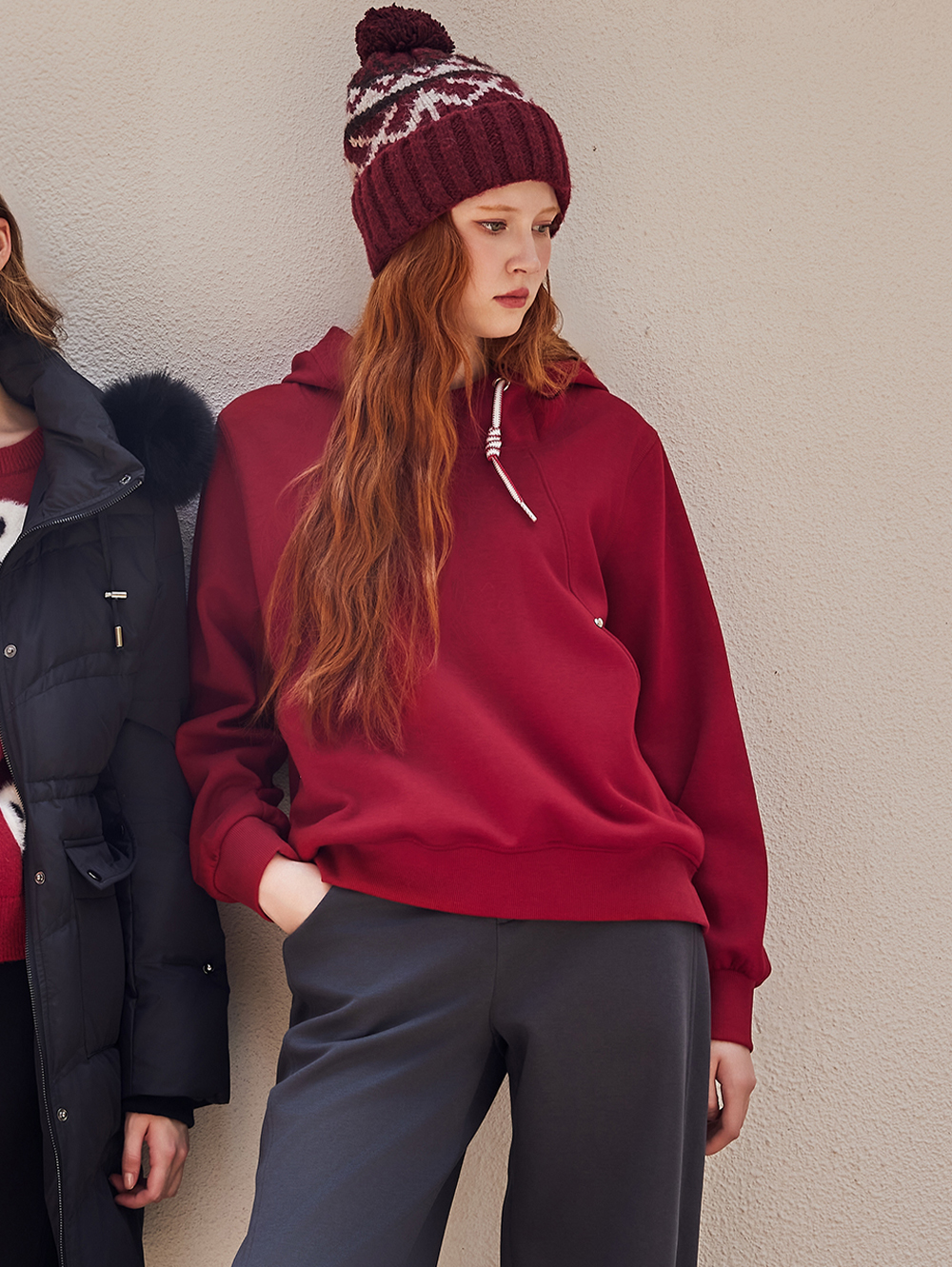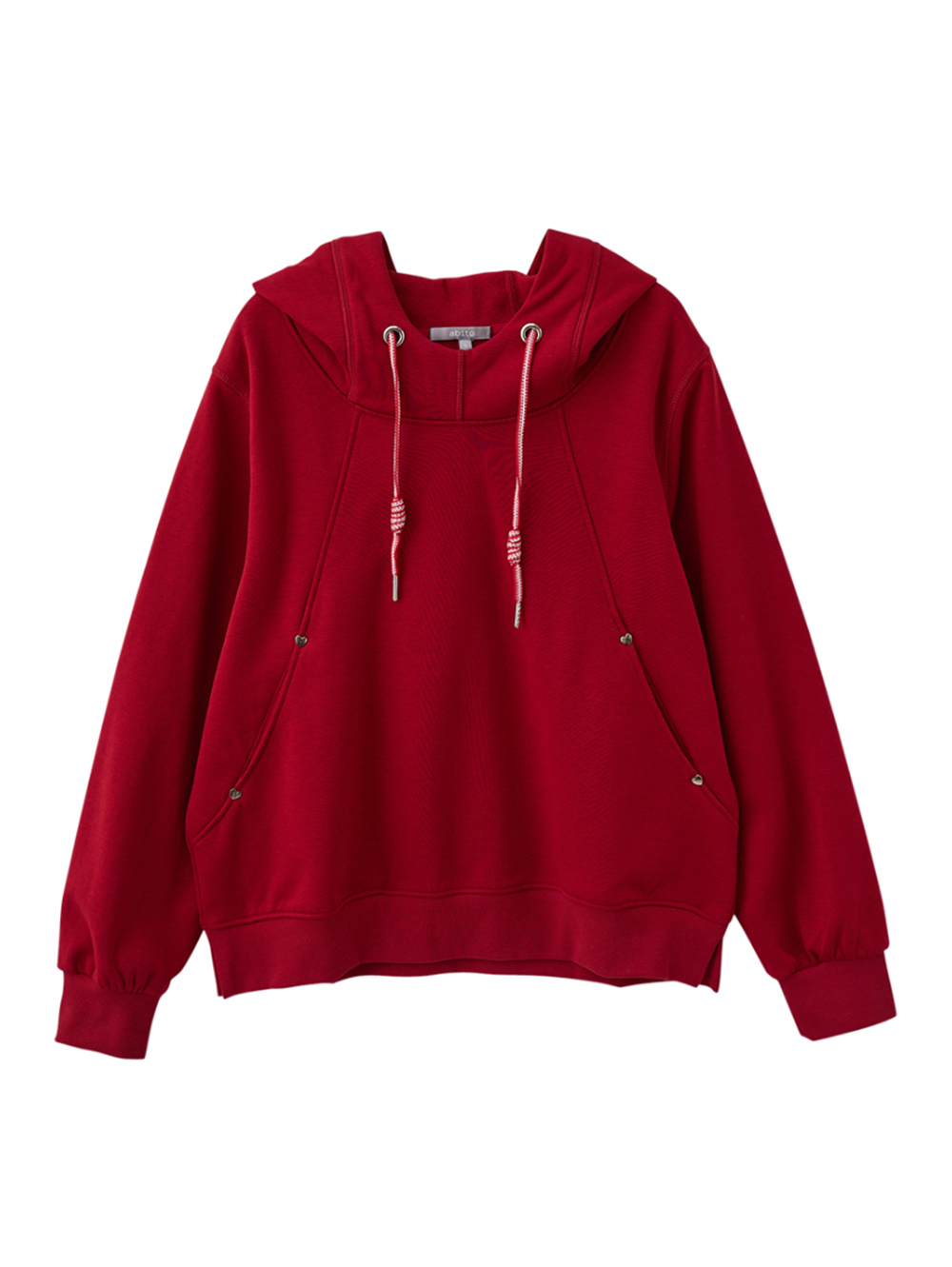 *內刷毛保暖面料 *金屬愛心裝飾釦 *連帽抽繩設計 *落間拉克蘭袖版型