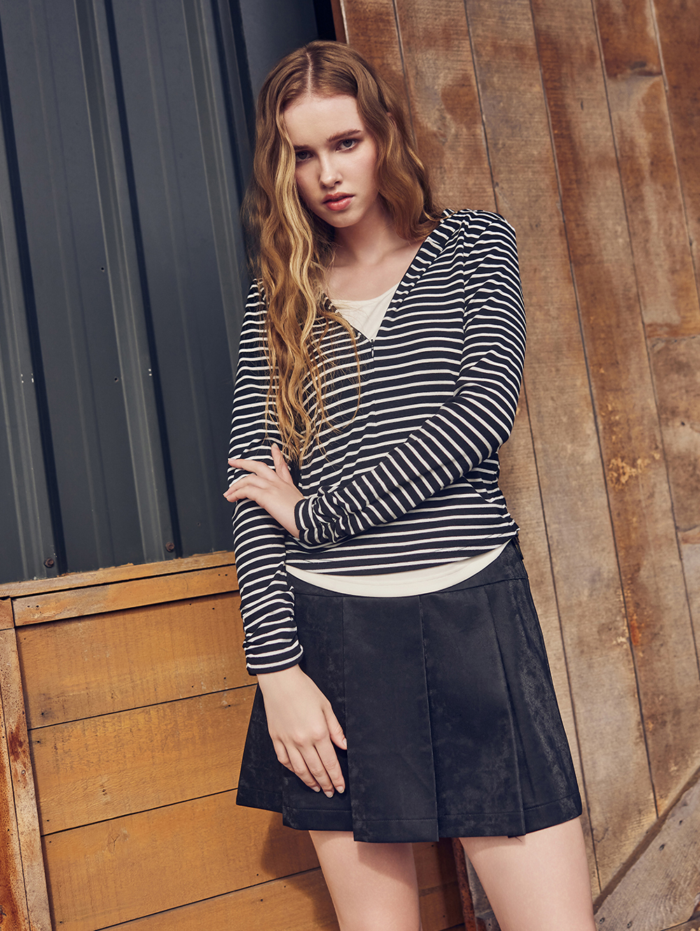 abito假兩件條紋連帽上衣