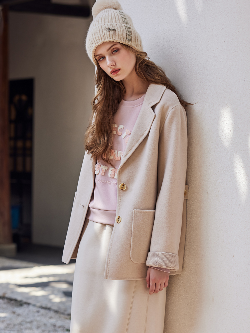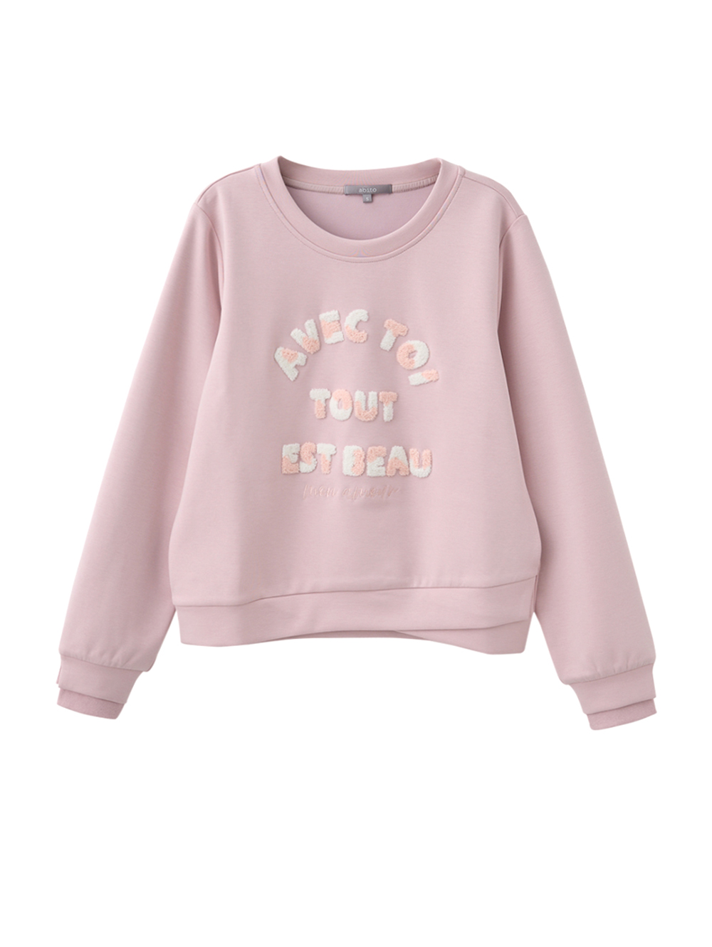 *立體絨毛混色造型字體 *下擺交疊拼接設計 *柔軟面料親膚 *日常休閒百搭款