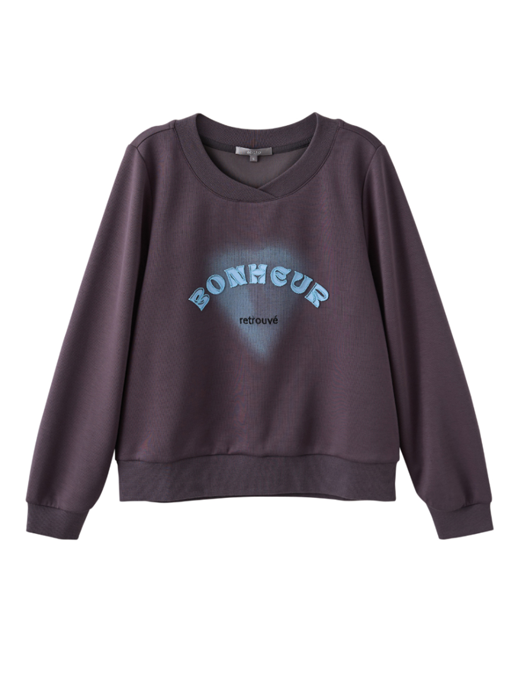 *噴墨愛心圖案 *電繡字母邊框細節 *特殊領口交疊設計 *拼接羅紋加彈性與耐用