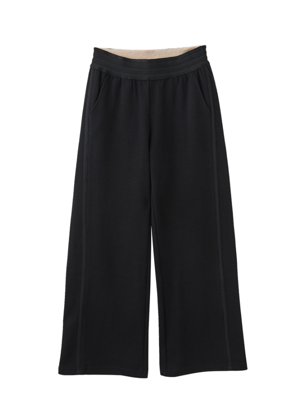 *休閒日常穿搭 * 寬版鬆緊腰頭舒適自在 *側邊線條拼接修飾比例 *柔軟親膚棉質面料