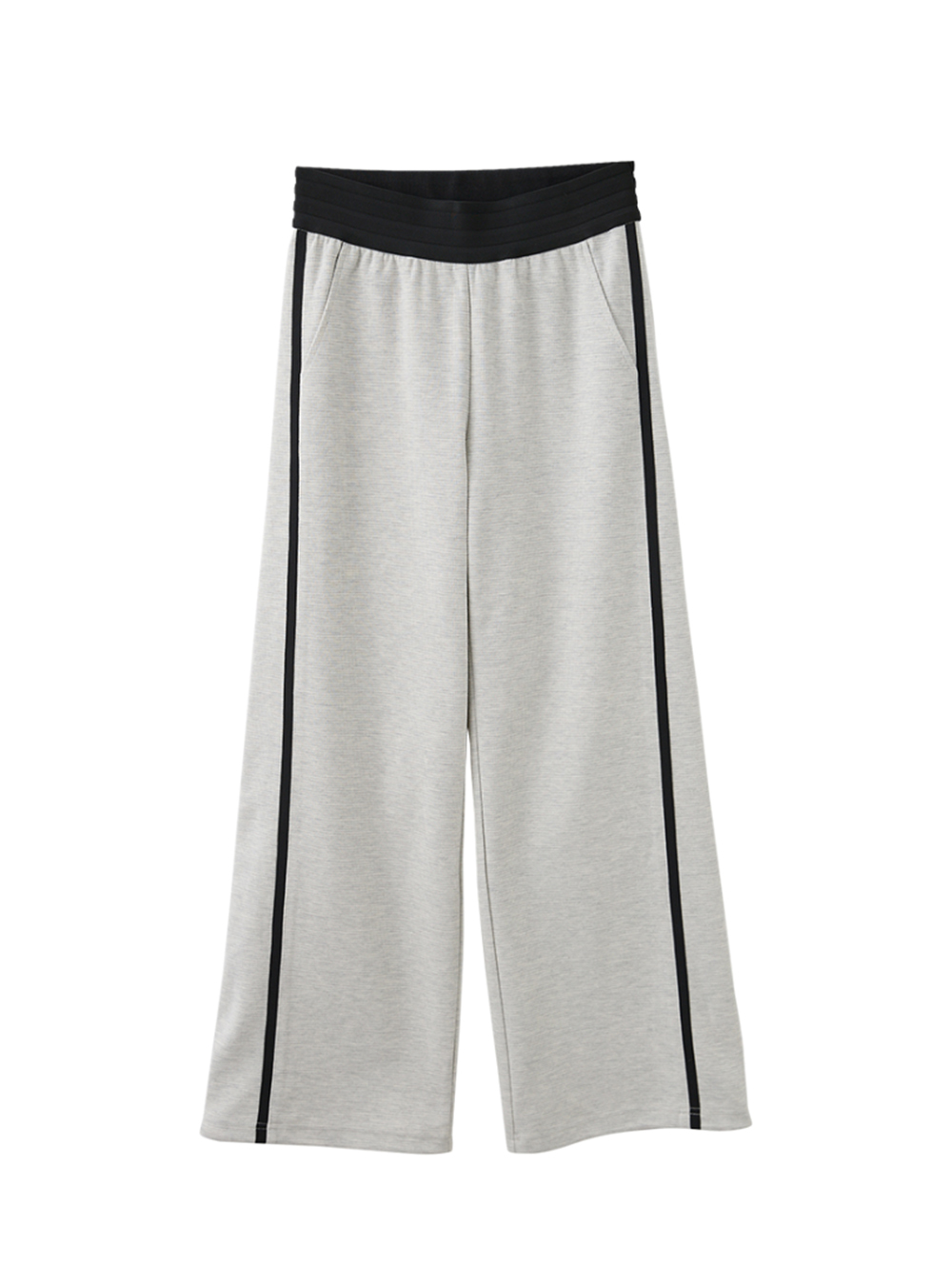 *休閒日常穿搭 * 寬版鬆緊腰頭舒適自在 *側邊線條拼接修飾比例 *柔軟親膚棉質面料