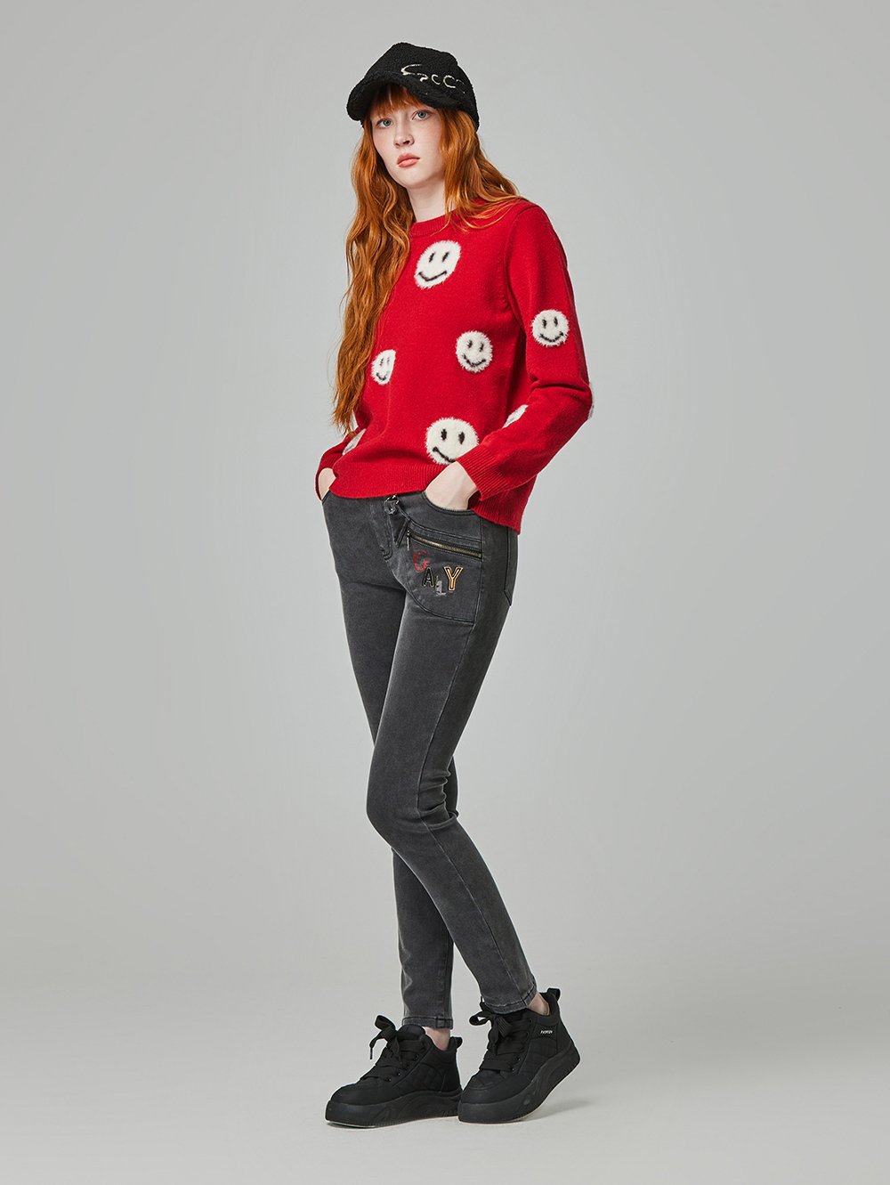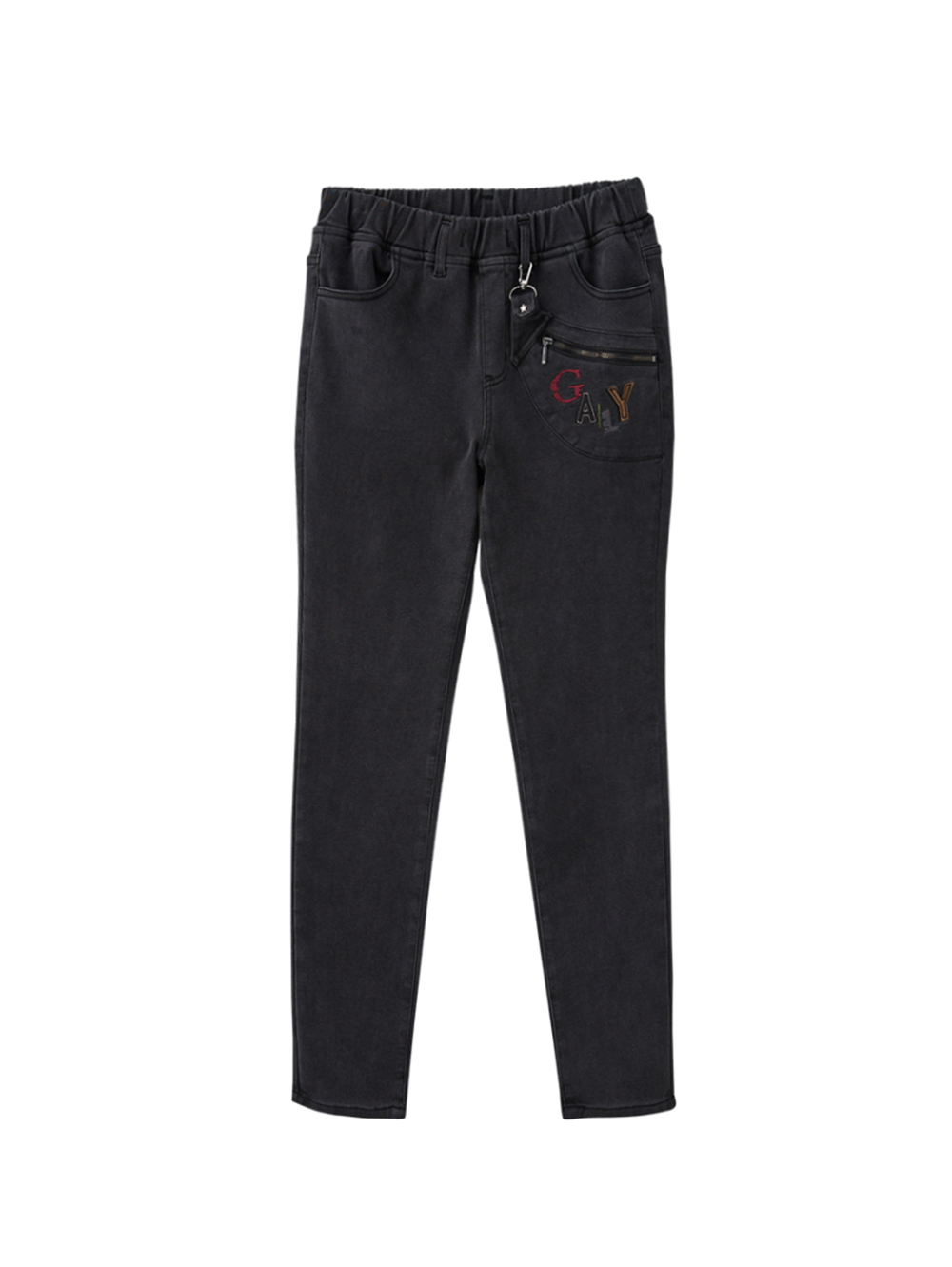 *面料內刷毛,保暖舒適 *貼身直筒版型,修飾腿部比例 *字母刺繡拉鍊細節特色 *鬆緊腰頭,穿脫方便舒適