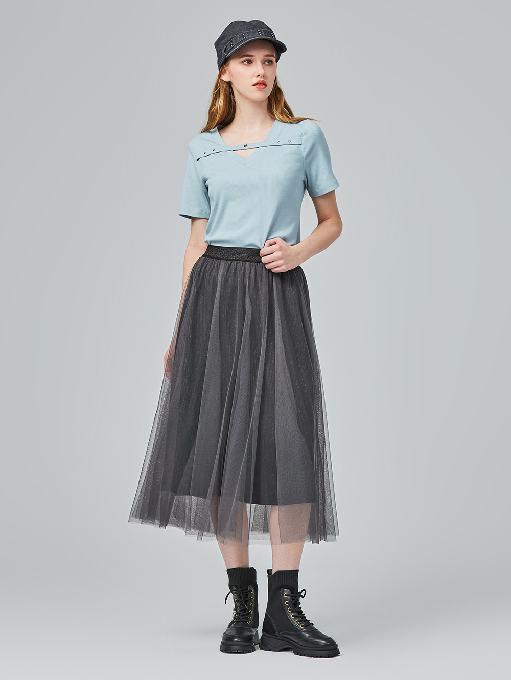 *氣質修身版型 *舒適鬆緊腰頭 *多層次網紗裙擺 *內層柔軟亮片布料