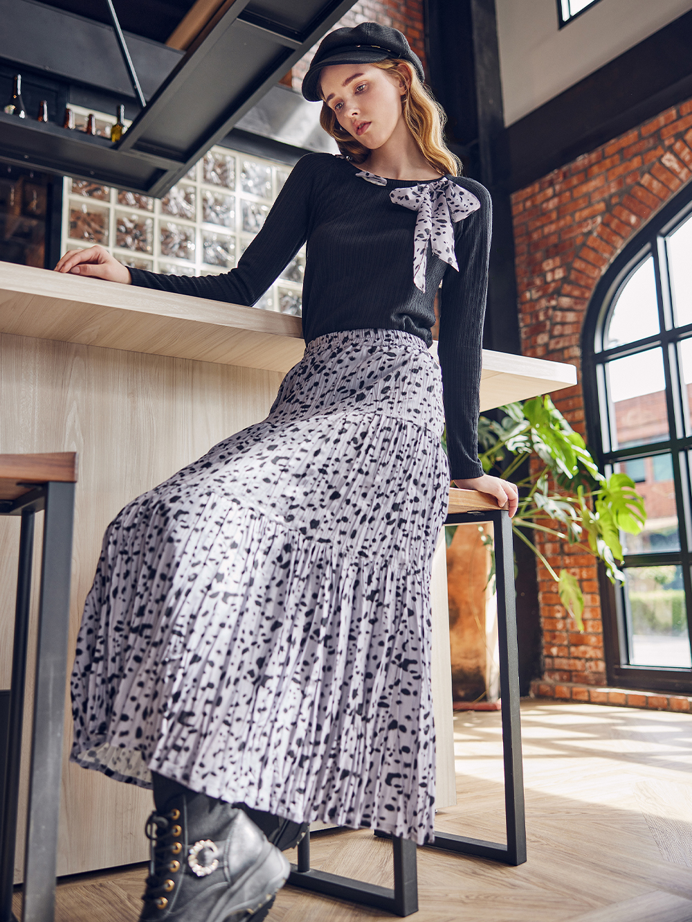 *蛋糕裙襬剪裁版型 *特殊皺紋面料 *豹紋紋路印花 *柔軟舒適面料