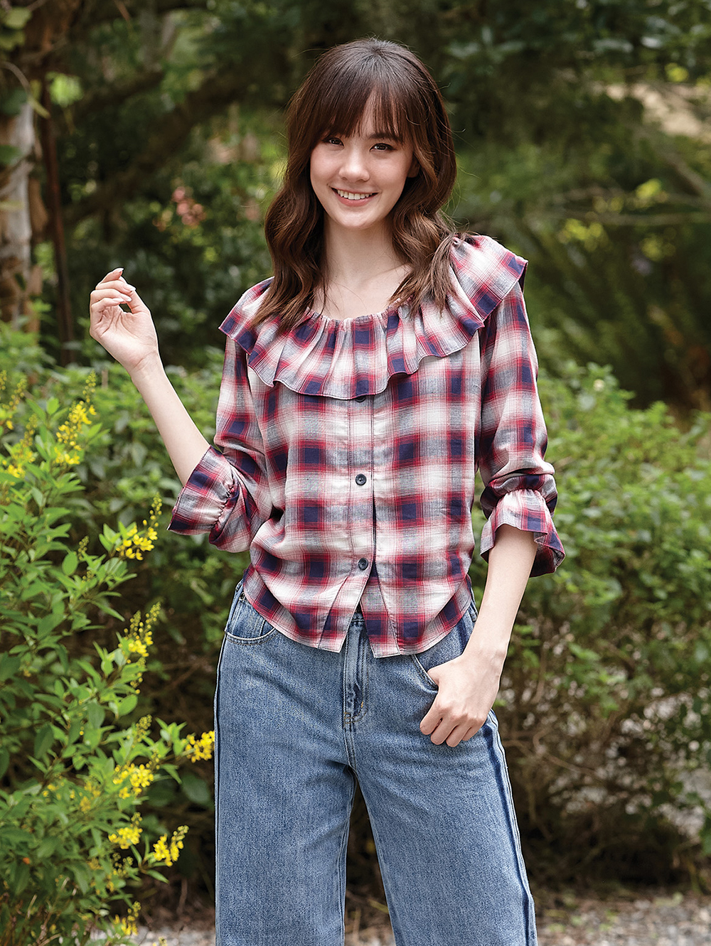 -優雅進口布底 -荷葉邊一字領設計 -基礎百搭身形