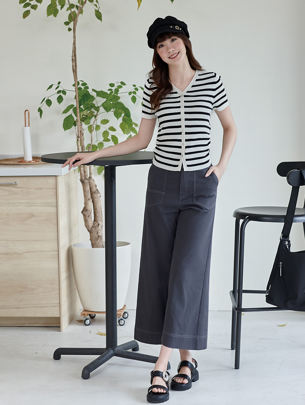 DITA雙釦個性九分寬褲