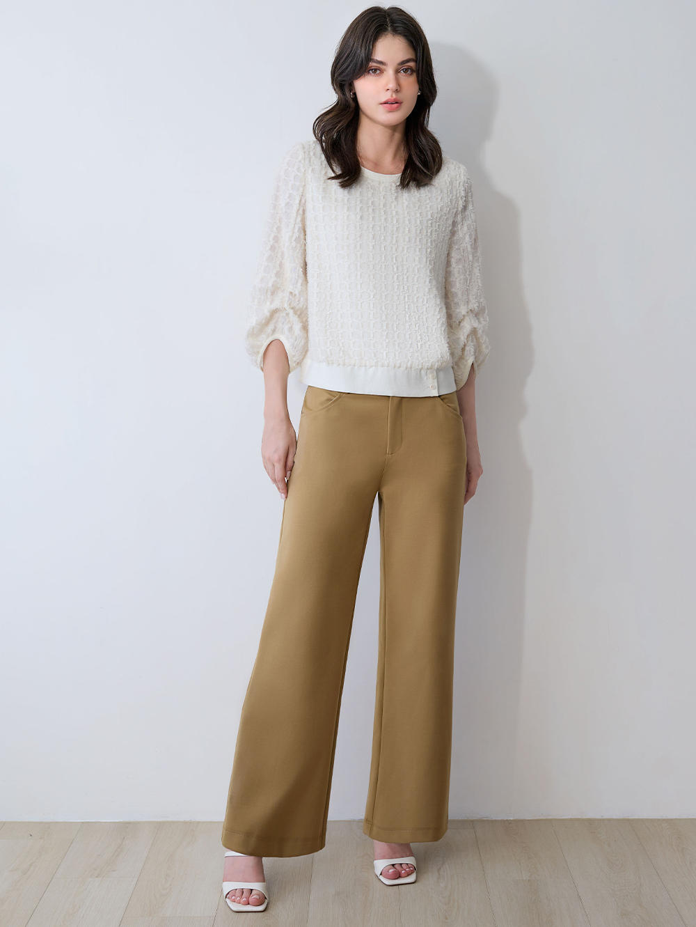 高質感日本進口面料, 高密度彈力佳穿著俐落修飾又舒適, 通勤或日常都能展現質感穿搭。