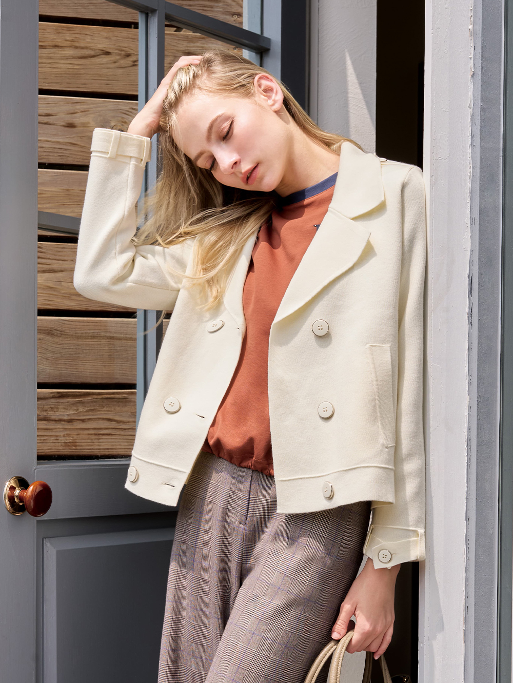 小範圍文字與撞色領邊, 簡單質感好搭配, 下擺抽繩可自由調整不同圍度。