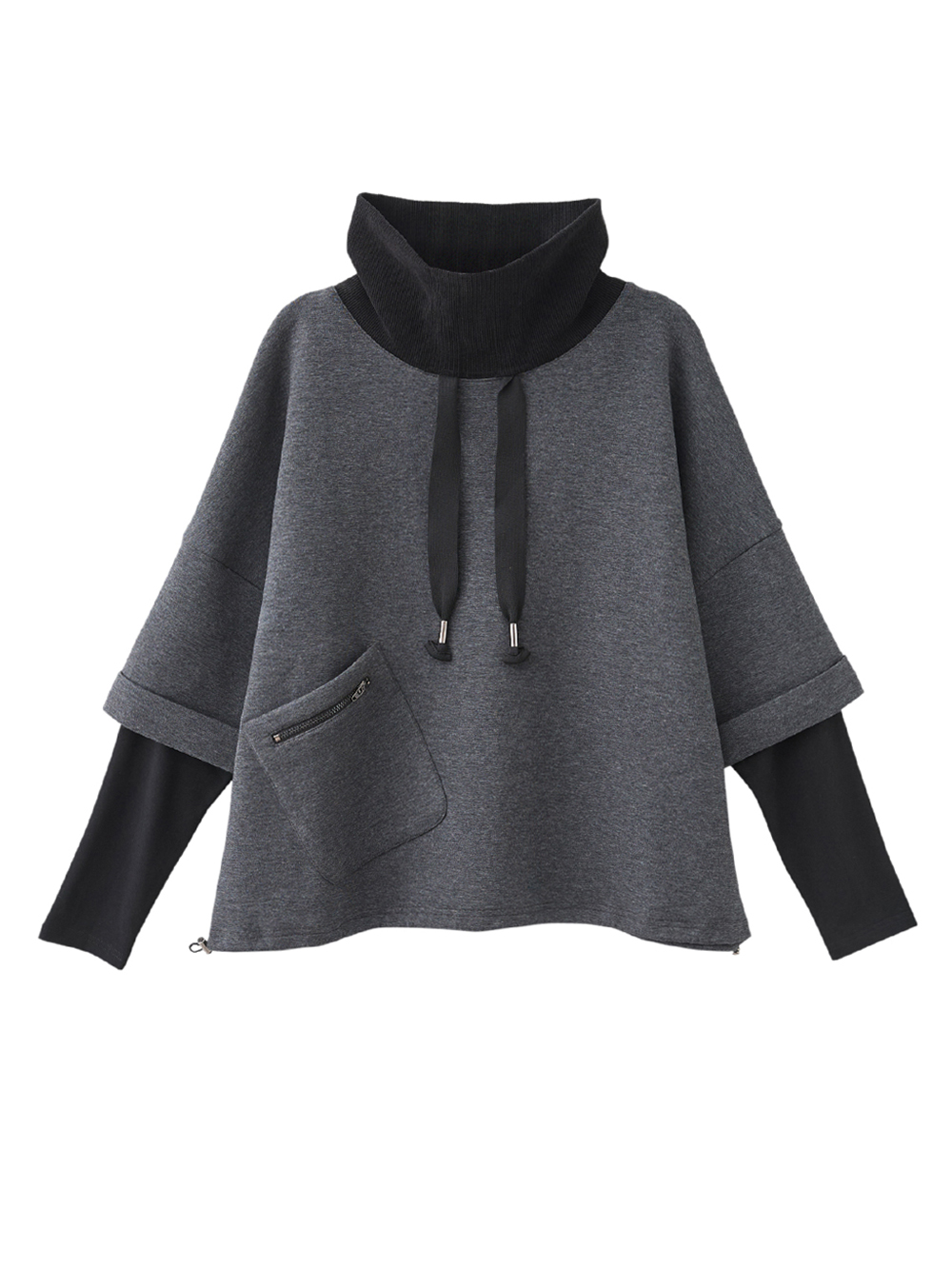 JOAN異材質可抽領寬袖層次上衣