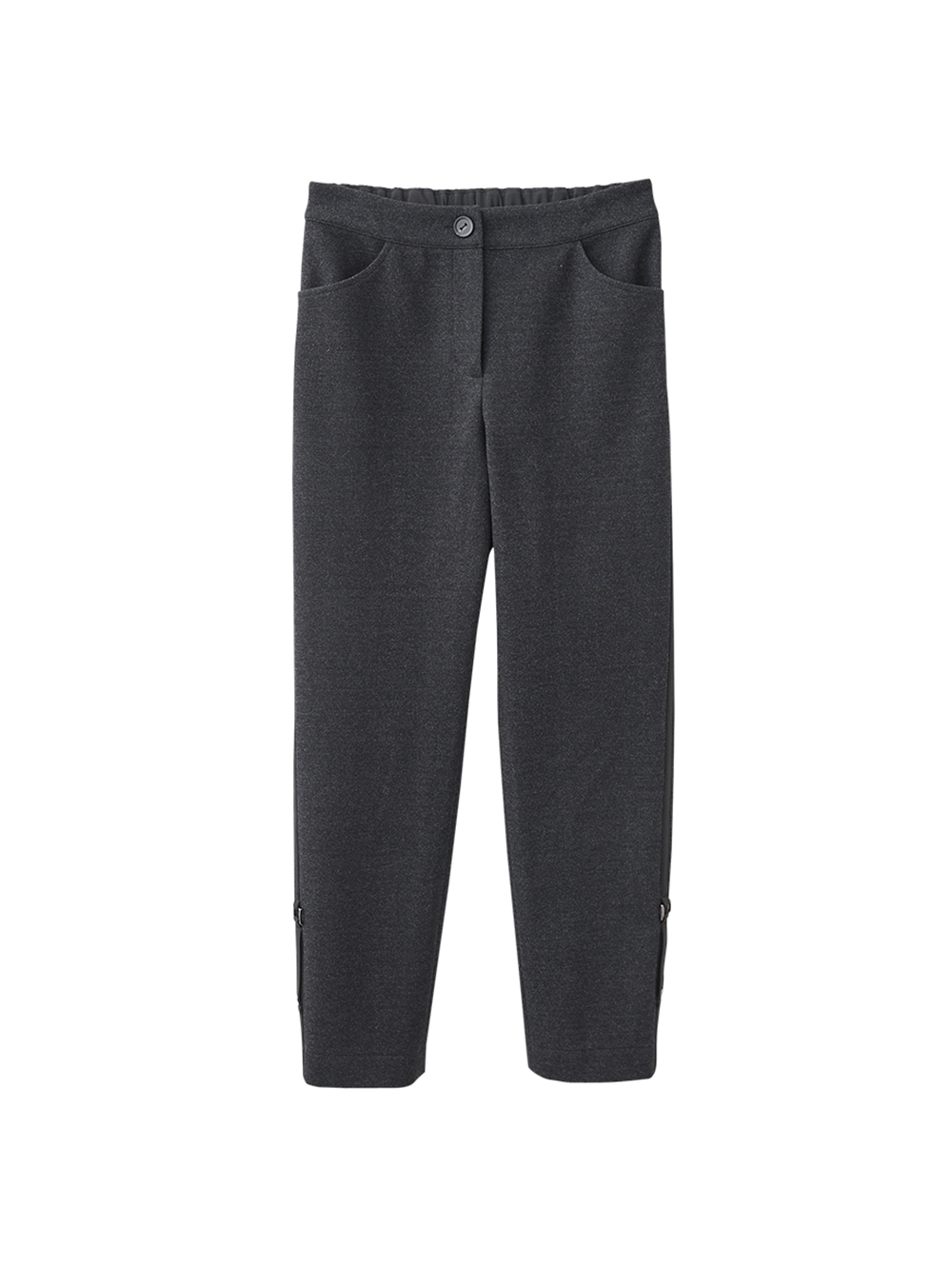 柔軟質感與俐落版型的完美結合。微面磨毛手感, 細膩溫潤, 帶來舒適的穿著體驗; 側邊拼接異材質裝飾織帶增添層次感與時尚度。