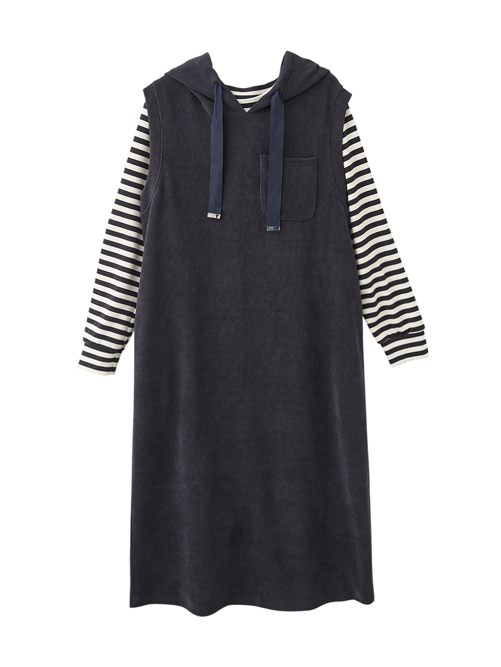 JOAN慵懶層次兩件式休閒連帽洋裝