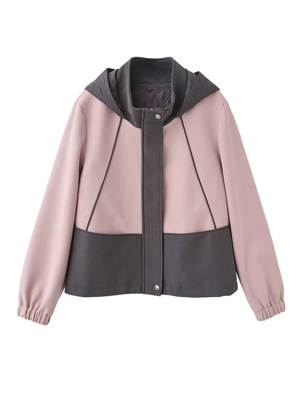 雙色效果與異素材绗縫連帽拼接設計, 輕鬆休閒, 好活動易穿搭, 搭配同系列短裙更俏麗時髦。