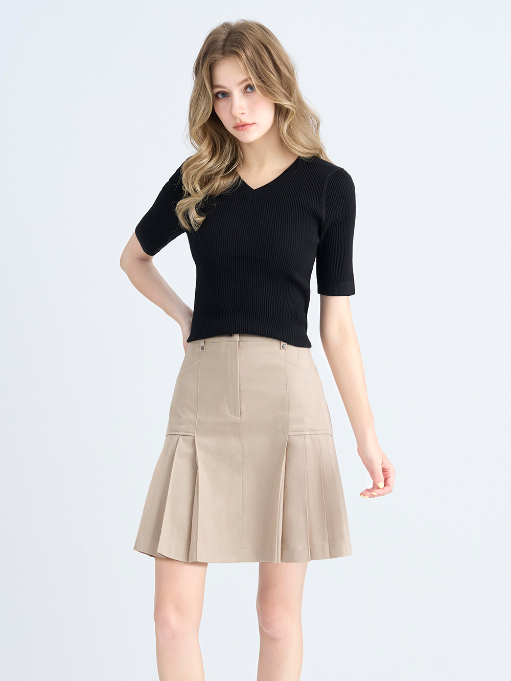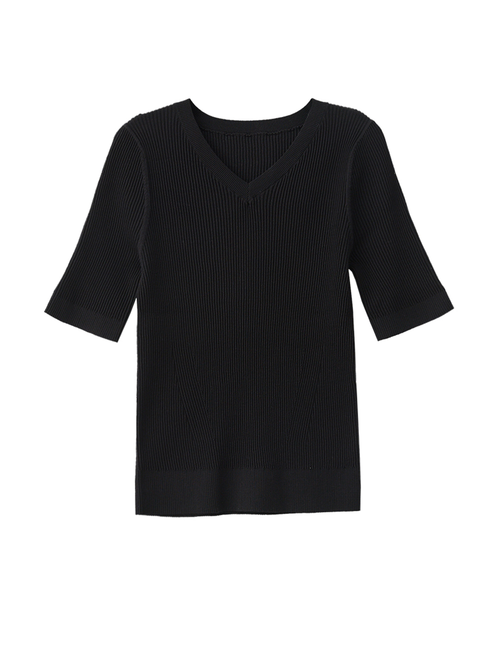 V領設計讓線條比例修長纖瘦, 5分袖長修飾上手臂, 合身線條可單穿也可作為內搭使用。