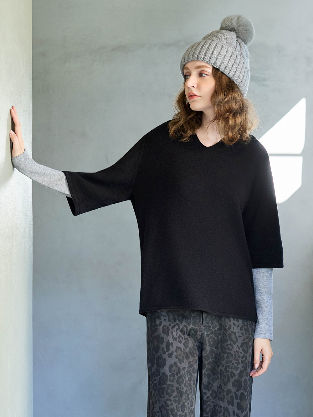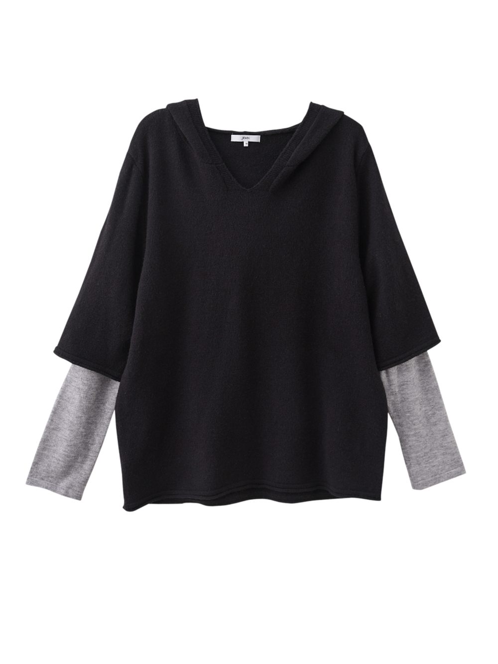 一件就能穿出層次感, 柔軟針織面料結合配色袖設計, 營造內搭長袖T的效果, 打造率性又質感的休閒造型。