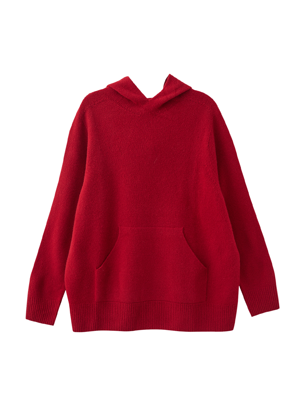 選用100%高品質羊毛素材, 織感細緻柔滑, 穿起來輕盈暖和,連帽與前袋設計, 替整件針織增添隨興慵懶的氛圍。