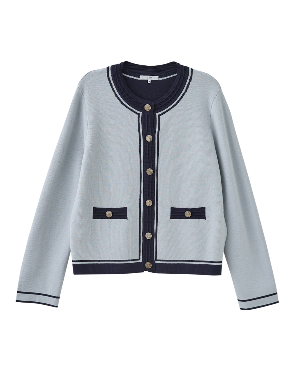外套採用經典圓領剪裁搭配質感撞色滾邊, 展現法是優雅氣息; 同系列短袖上衣, 可單穿或成套搭配, 免煩惱組合輕鬆完成精緻有型的日常穿搭。