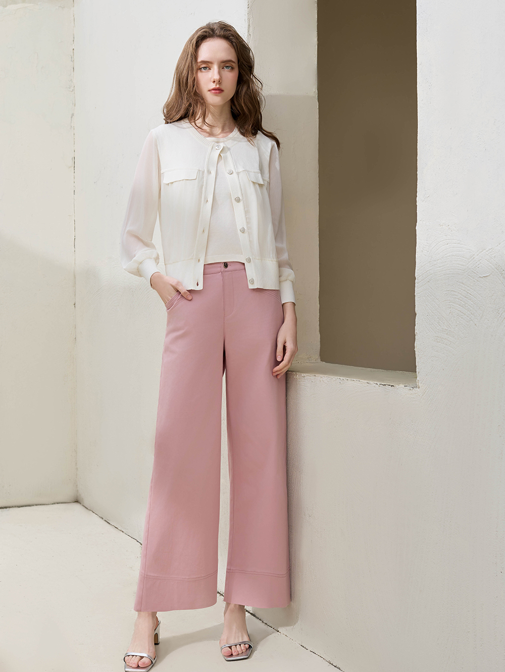以俐落的直寬褲打造修身比利, 布料手感細緻柔合, 帶有挺度又具有彈性, 無論搭配襯衫, 針織或簡單上衣, 都能輕鬆完成都會日常或通勤穿搭。