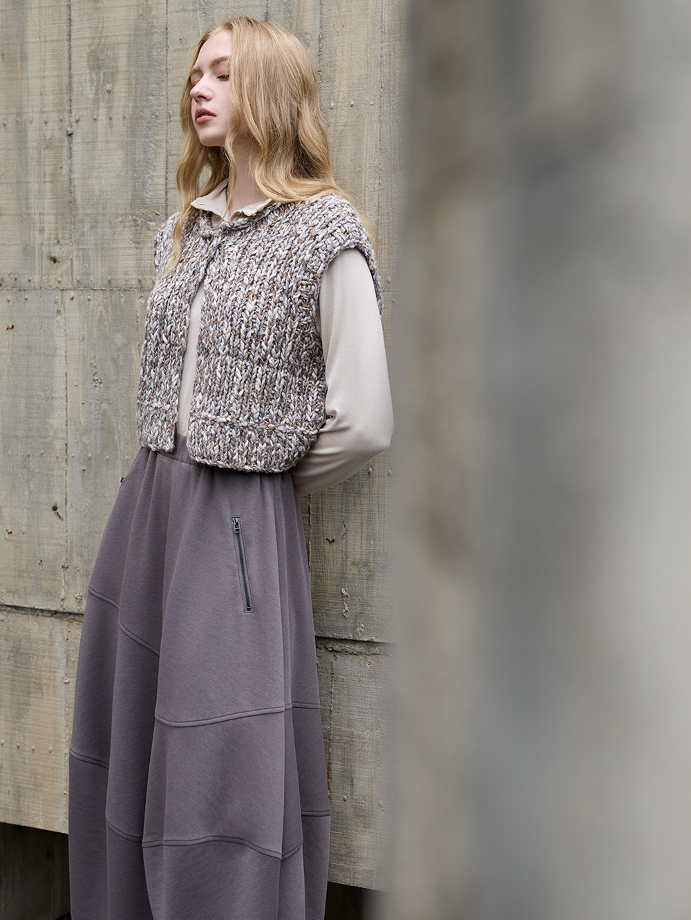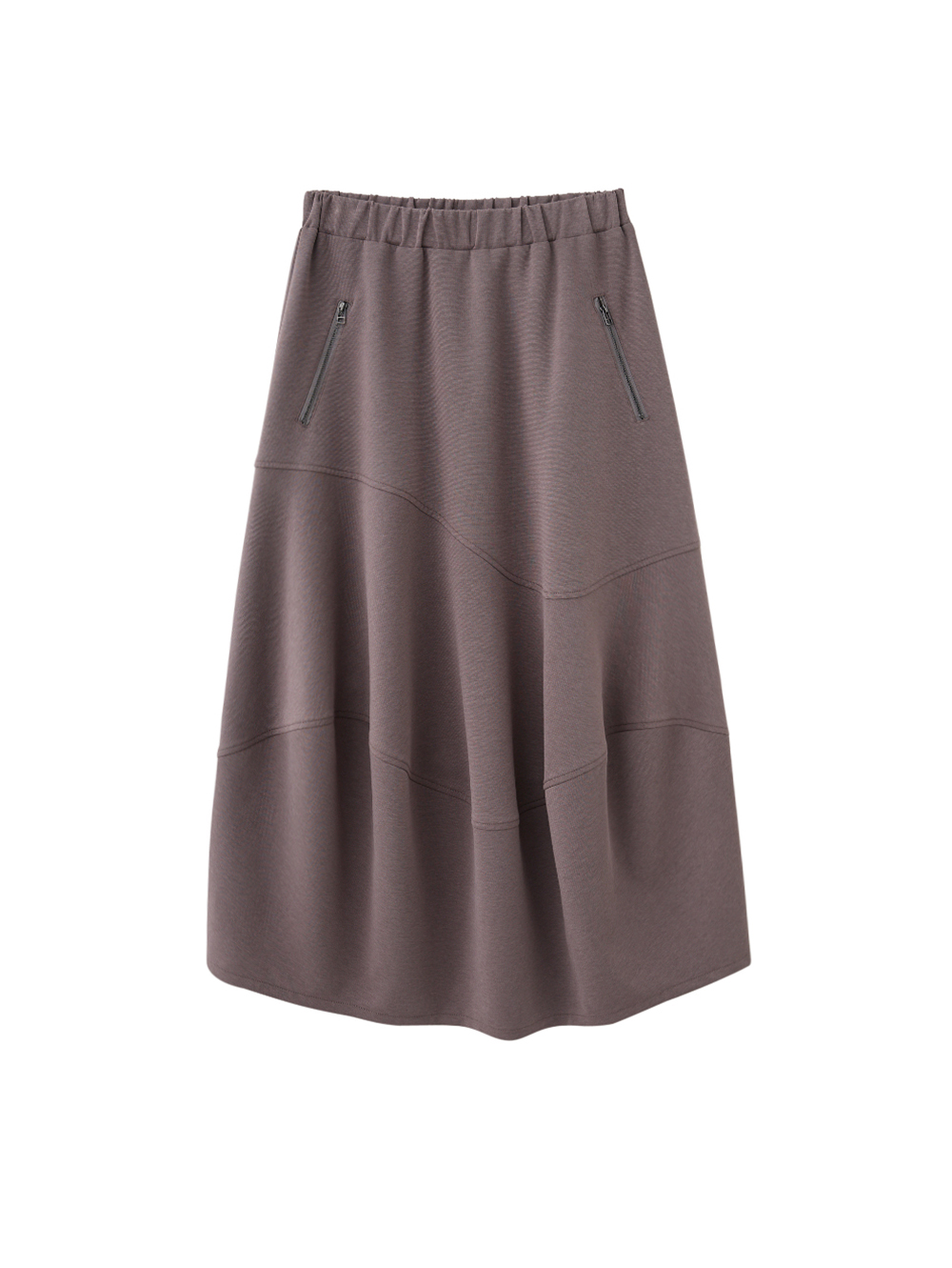 以立體拼接剪裁展現獨特弧度感, 巧妙修飾下身比例。 鬆緊腰設計搭配食用拉鍊口袋, 兼具舒適與功能性。