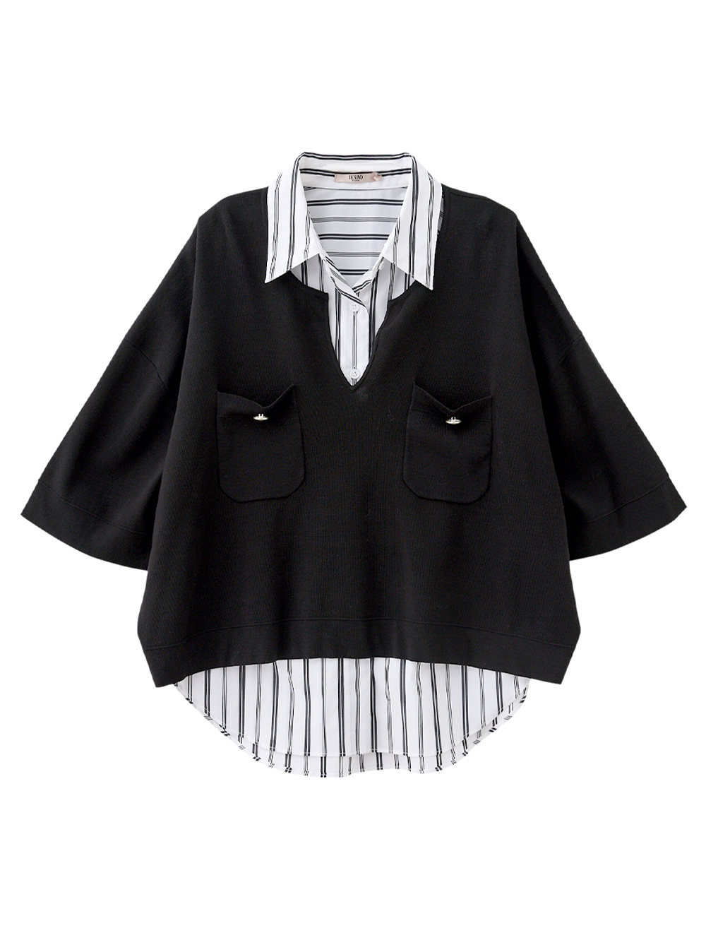V領寬鬆針織外罩, 搭配背心式襯衫內搭, 活力青春學院風 ; 可組合穿著也能各自另外搭配。