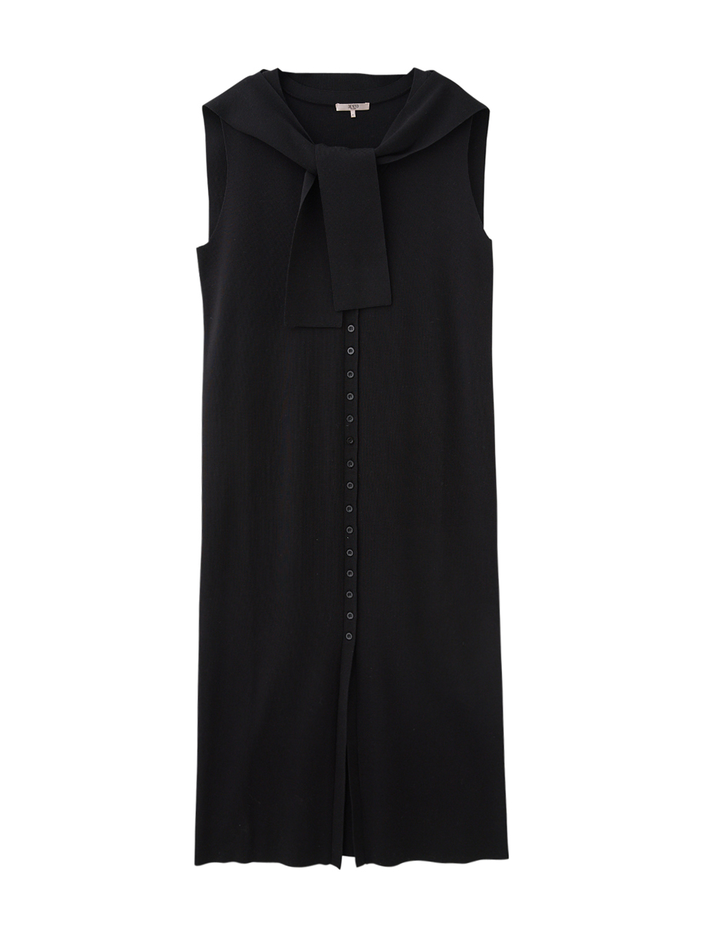 DENOVOV領針織排釦洋裝(附針織披肩)