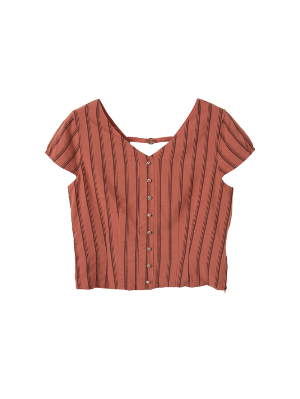 abito直條紋棉麻感短袖上衣