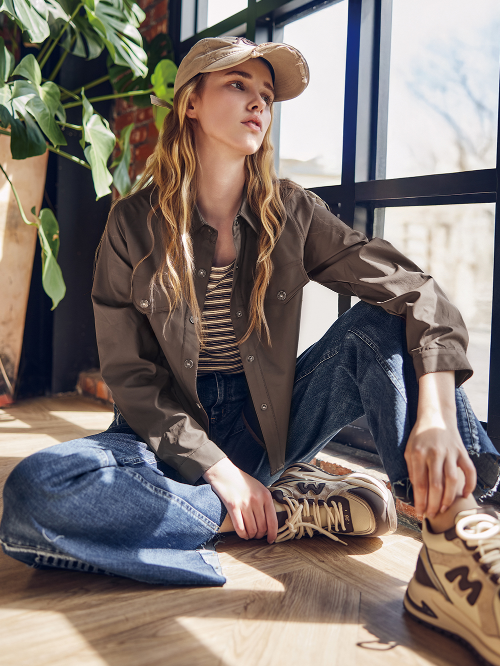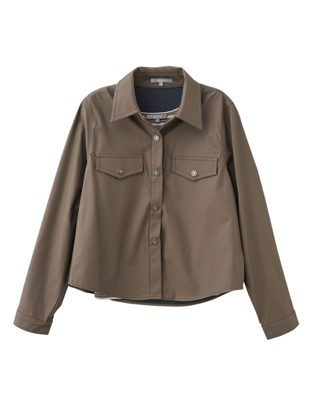 *短版修身剪裁 *內搭條紋背心,彈性柔軟親膚 *特殊皮革面料 *秋季個性休閒穿搭