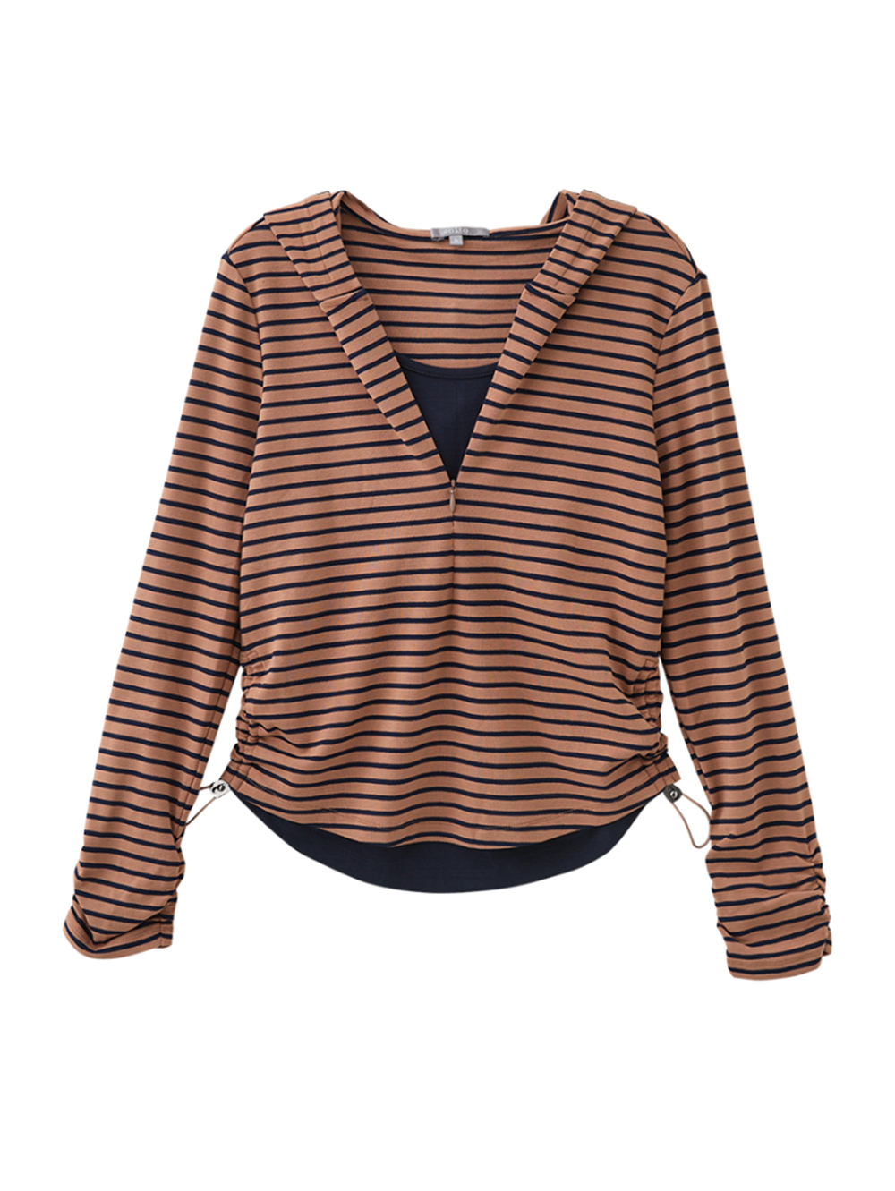 *側邊抽繩收腰設計,顯腰身 *假兩件造型呈現多呈次穿搭 *柔軟棉質面料彈力佳 *胸前影形拉練連帽設計