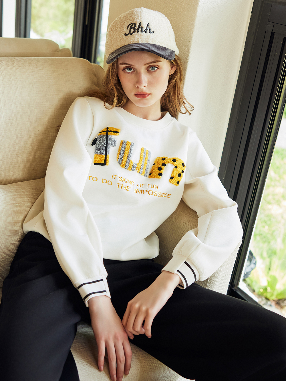*毛絨字樣造型細節 *羅紋領口連帽抽繩設計 *羅紋加強領口、袖口彈性與耐用 *柔軟面料,舒適保暖
