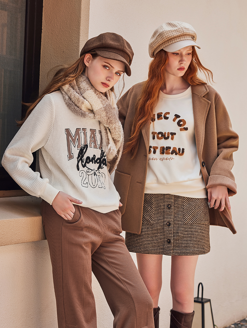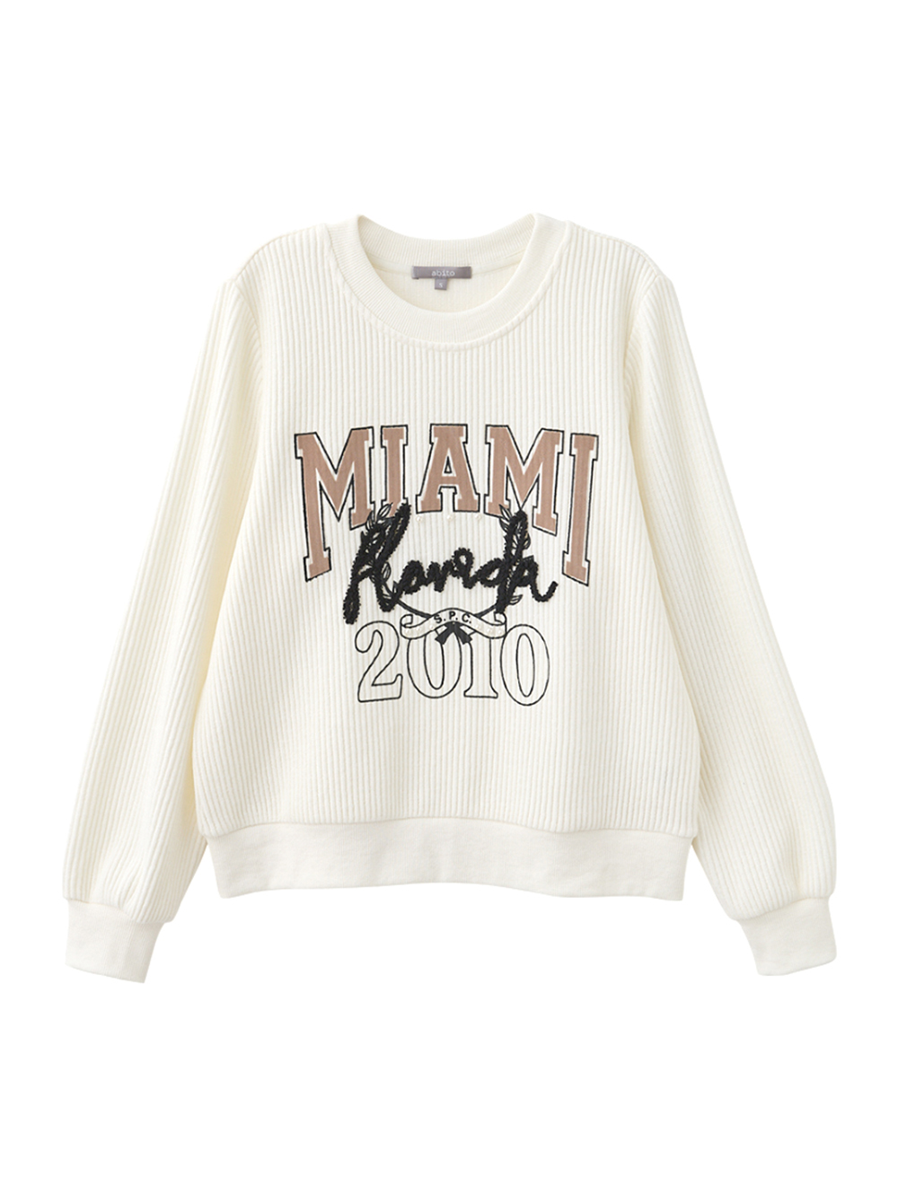 *字樣刺繡圖造型 *立體珍珠點綴細節 *羅紋加強領口、袖口彈性與耐用 *寬鬆版型,柔軟面料