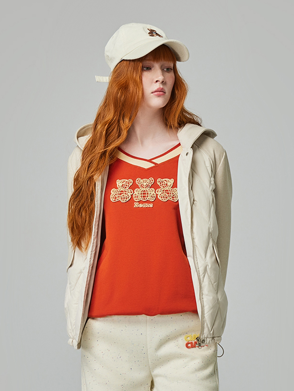 abito可愛V領熊熊圖騰上衣