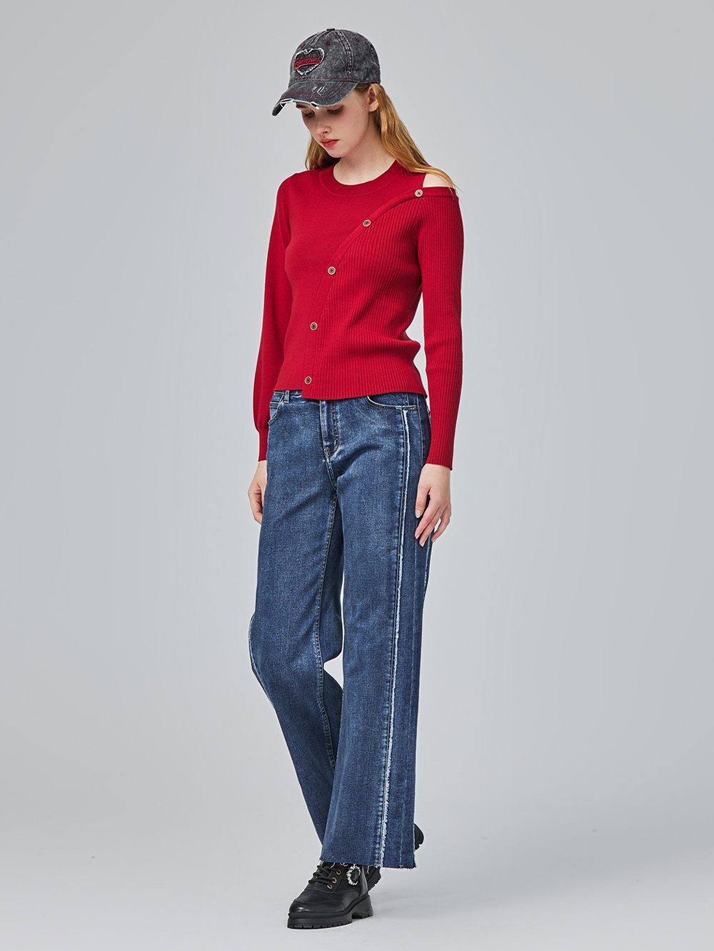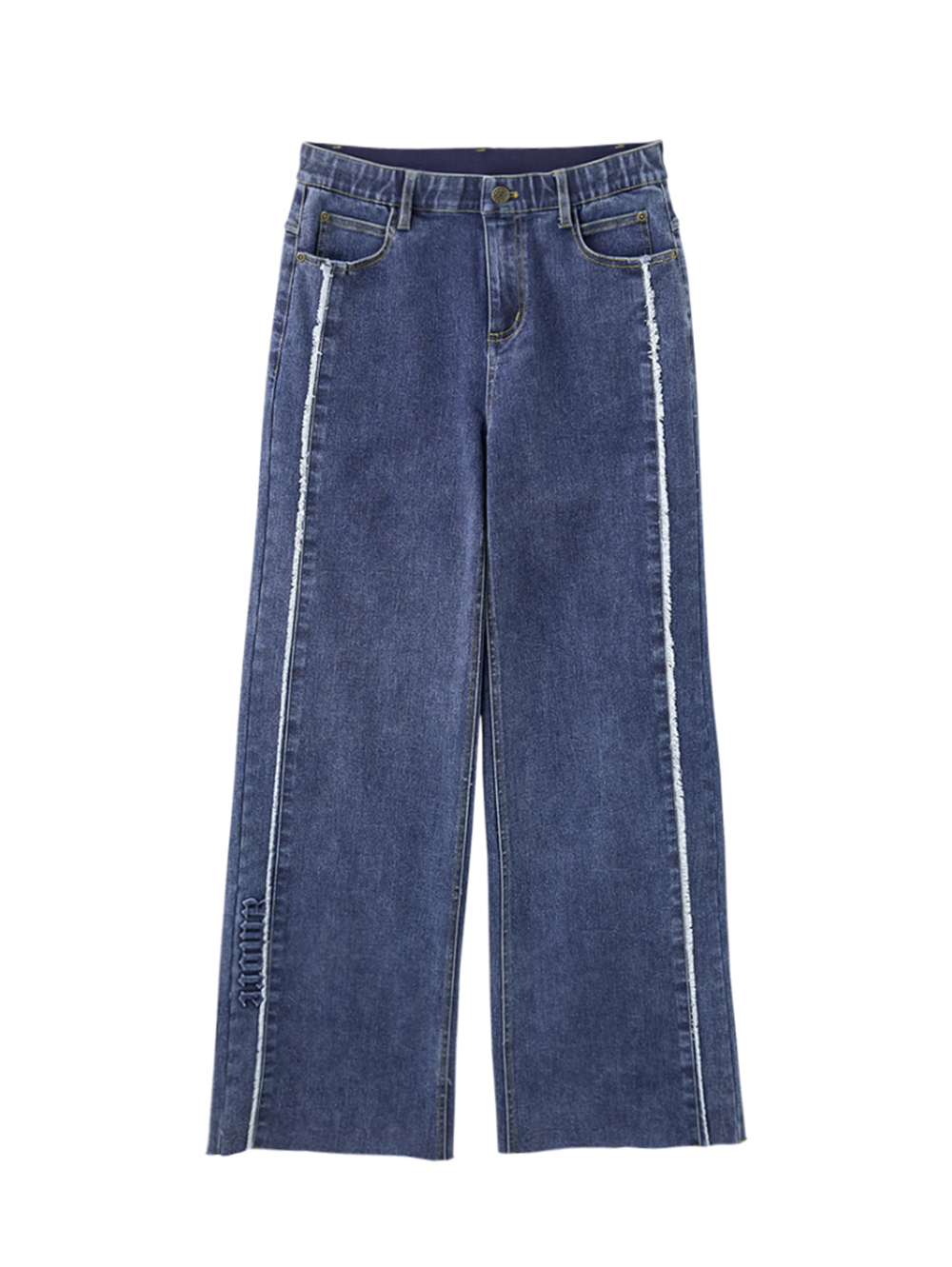 abito百搭不收邊抽鬚牛仔喇叭褲