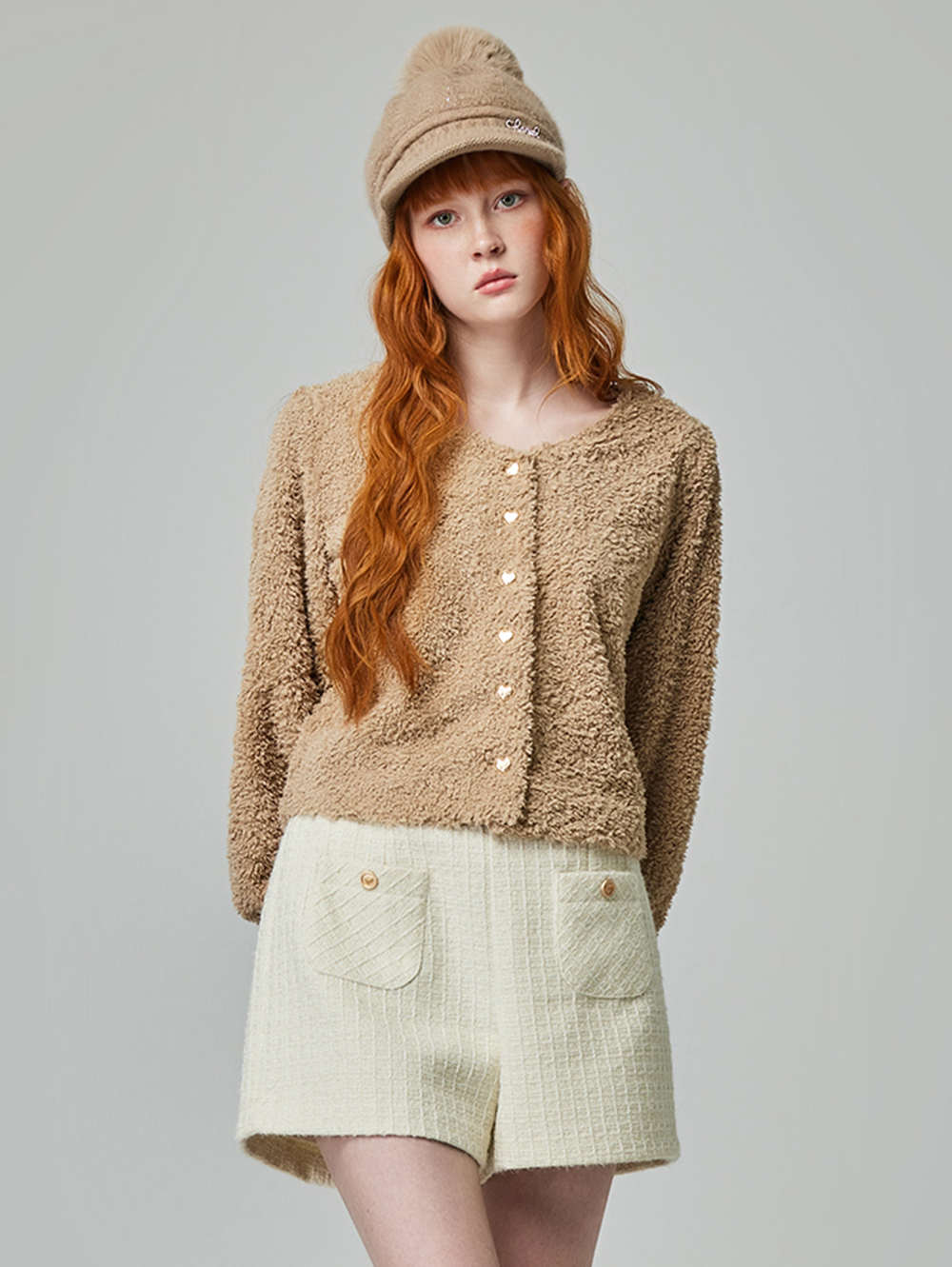 *小香格紋面料 *金屬愛心圓釦 *前貼口袋設計 側邊隱形拉鍊設計