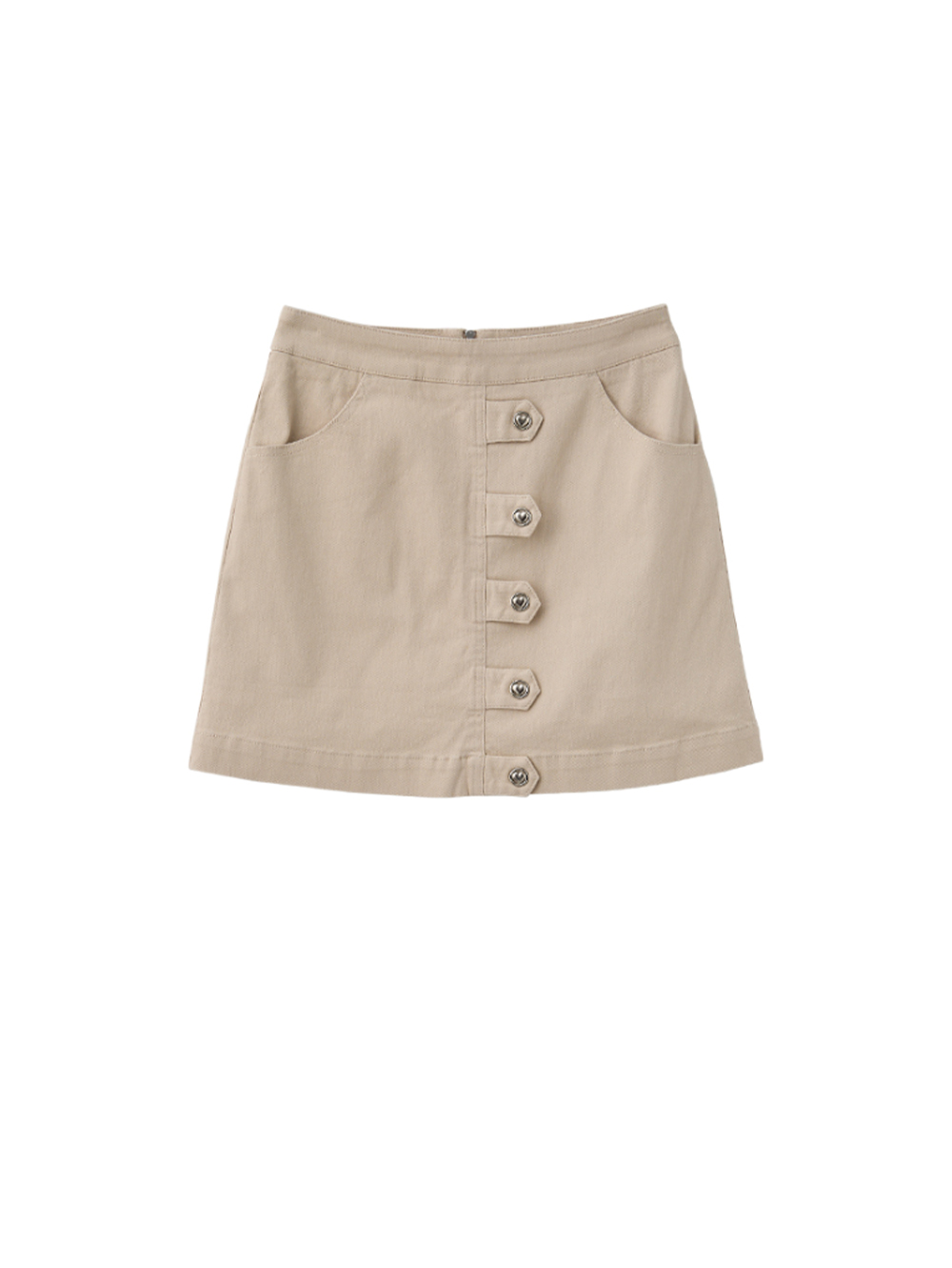 *甜美愛心裝飾釦 *後中拉鍊設計 *舒適棉質材質 *版型包臀窄版修飾線條
