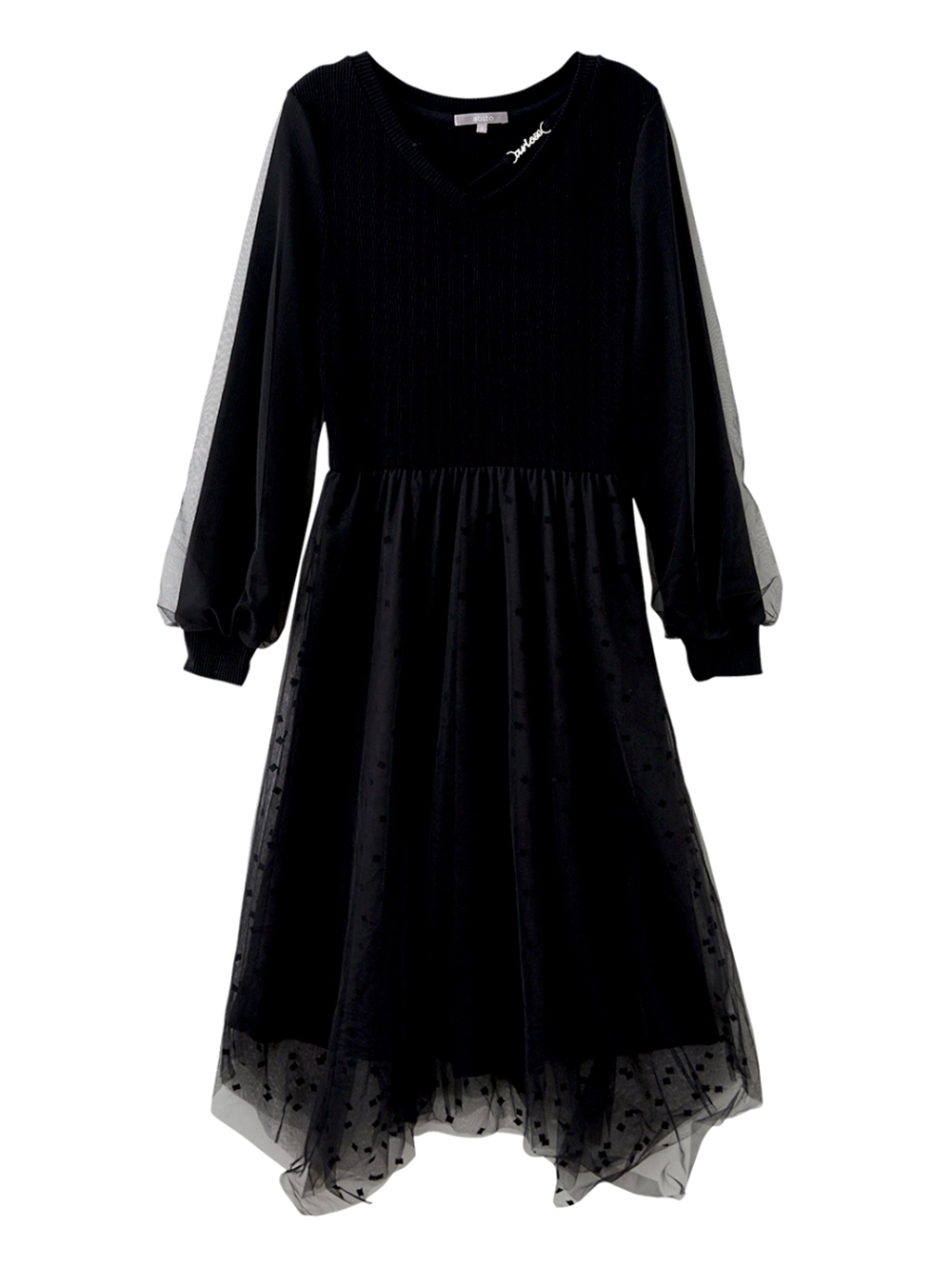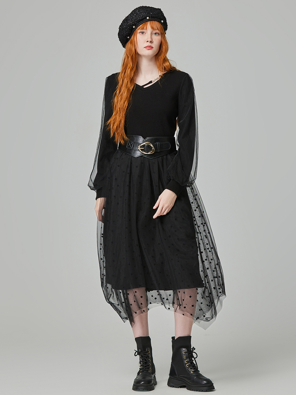 *V領版型修飾線條 *領口裝飾釦增添細節 *雙層網紗多層次感 *柔軟舒適面料,親膚不刺