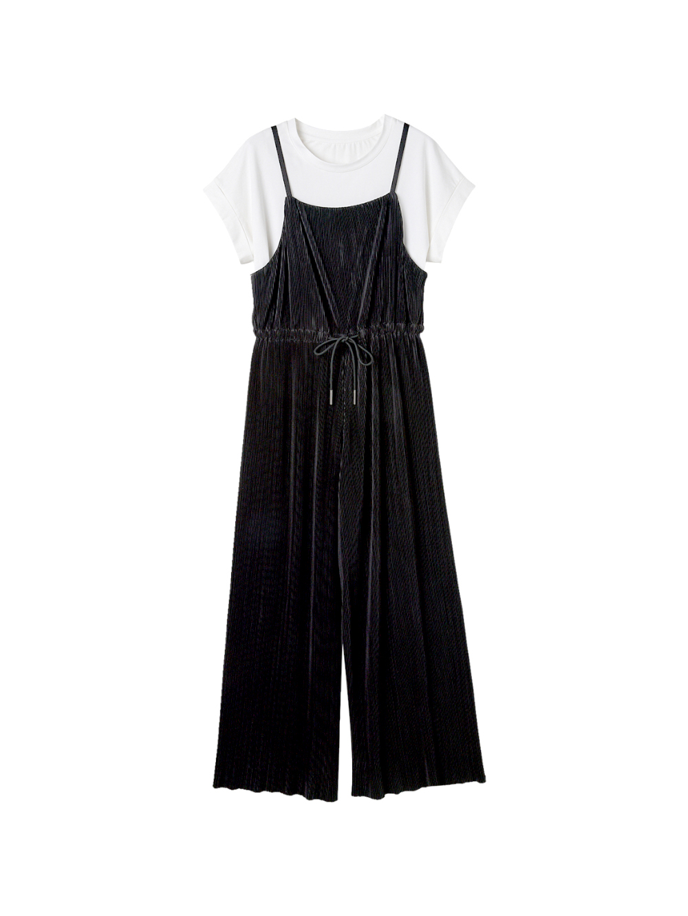 內搭的T恤的版型修飾肩膀和手臂線條,細緻的壓褶的布料,在視覺上顯得輕盈,是休閒與甜美混搭的完美單品。