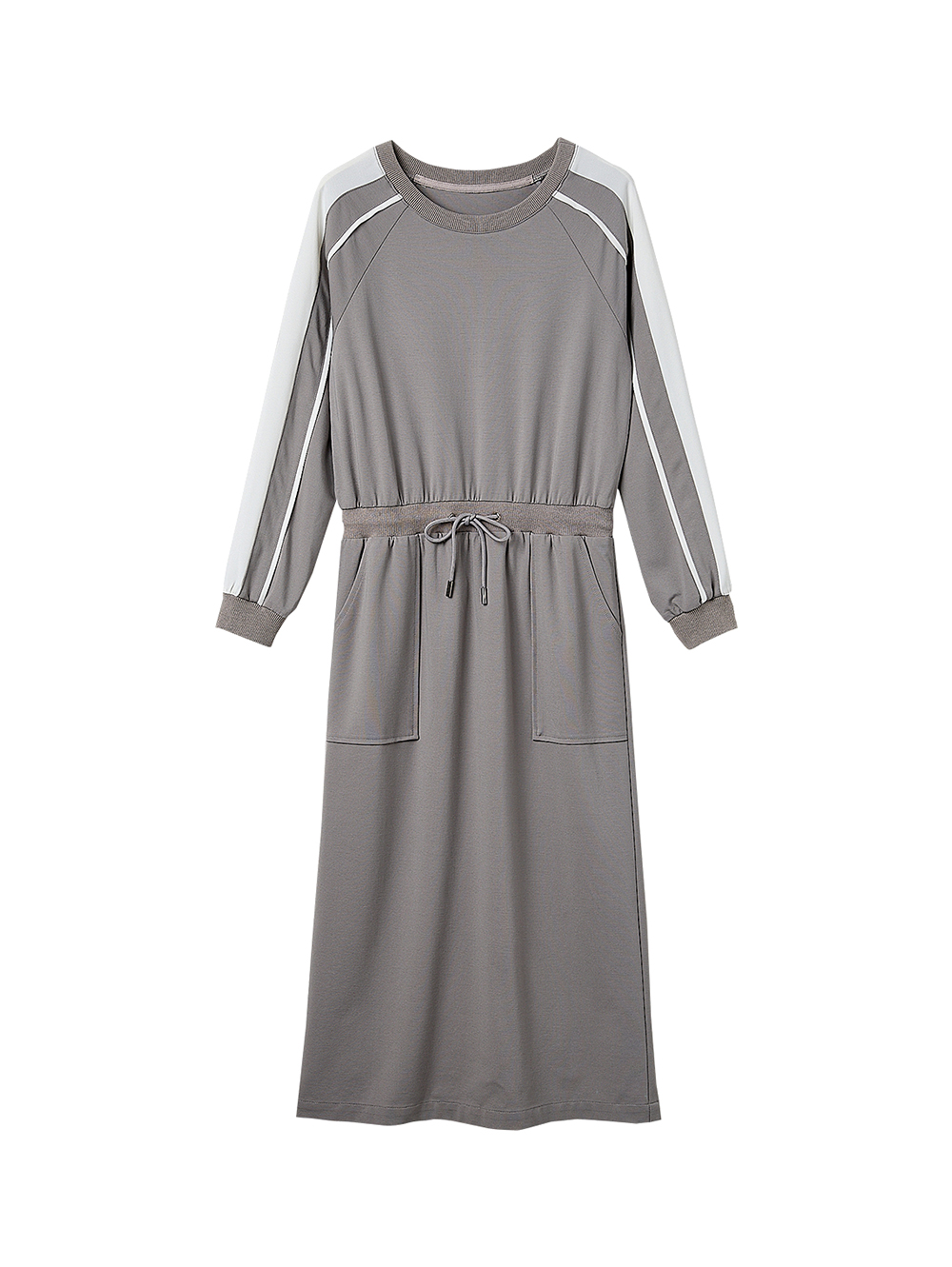 舒適的丸編素材,加上拉克蘭袖的設計修飾肩部曲線,腰部抽繩讓整體視覺效果更俐落顯瘦,輕鬆穿出率性休閒風格。