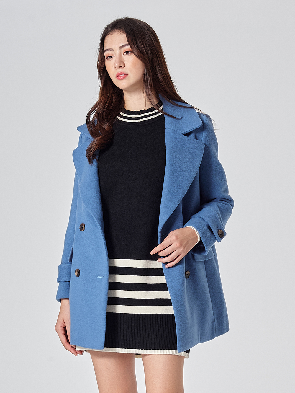 DITA中長版雙排扣毛料外套