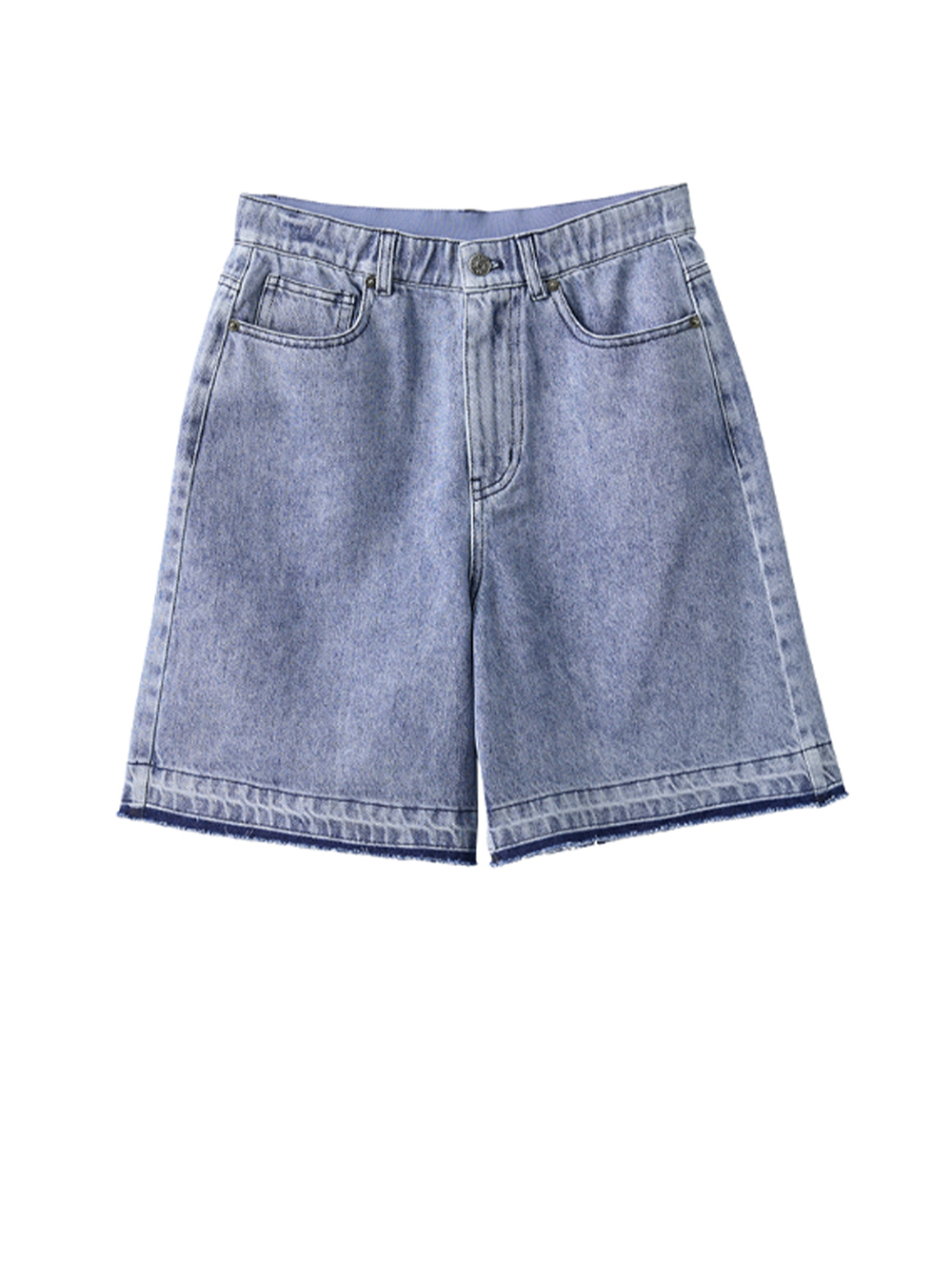 -基礎百搭身形 -後口袋低調微笑印花 -褲口鬚邊增添個性