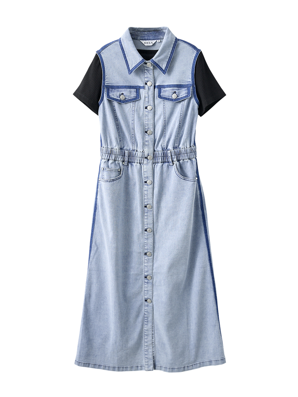 -收腰修飾版型 -側邊留色水洗布底 -兩件式多風格穿搭