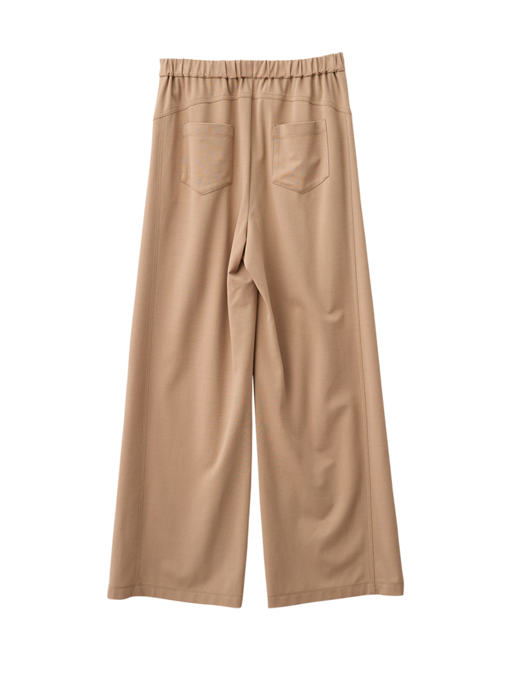 彈性機能與垂墜度都優選的羅馬布面料, 整圈鬆緊腰頭舒適好套穿, 可與同系列條文布拼接彈性上衣做成套穿搭。