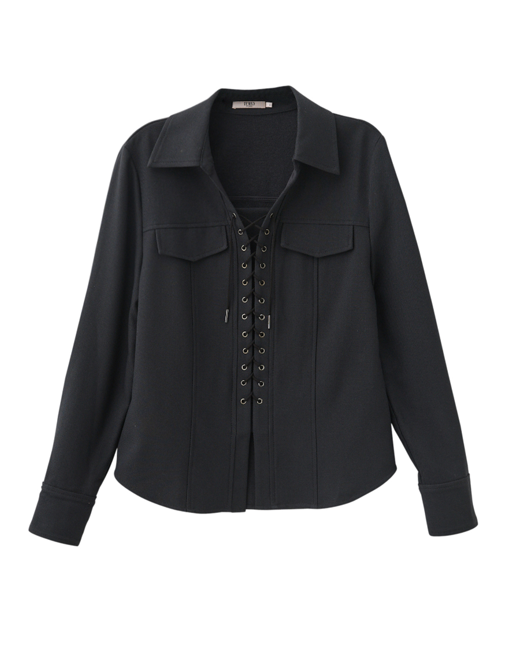襯衫版型絨入綁帶細節, 為日常穿搭注入時髦態度, 中縣立體剪裁修飾視覺比例, 拉出自然纖細的優雅身型。