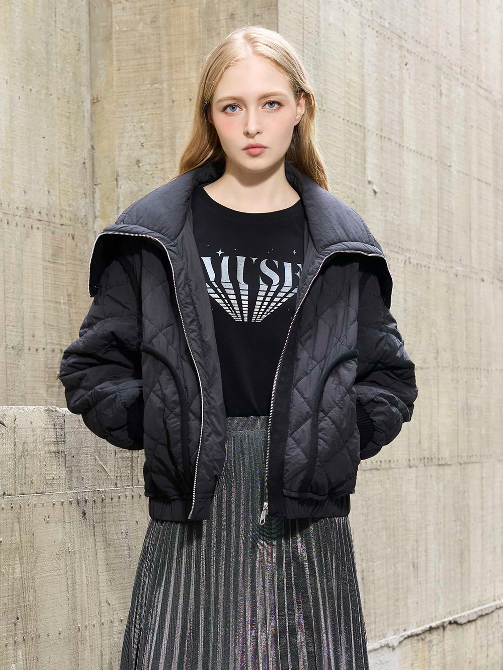 親膚溫暖的內磨毛面料, 一穿上就能感受溫柔包覆感。胸前金屬啞光標語印花, 展現低調時髦的個性態度。