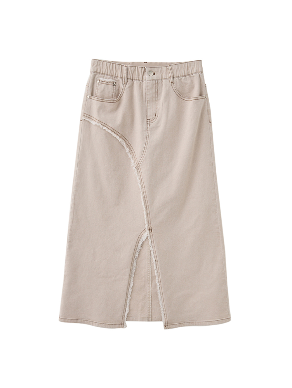*斜邊開口造型修飾臀型 *舒適棉質面料 *裙擺休閒不收邊設計 *日常百搭款