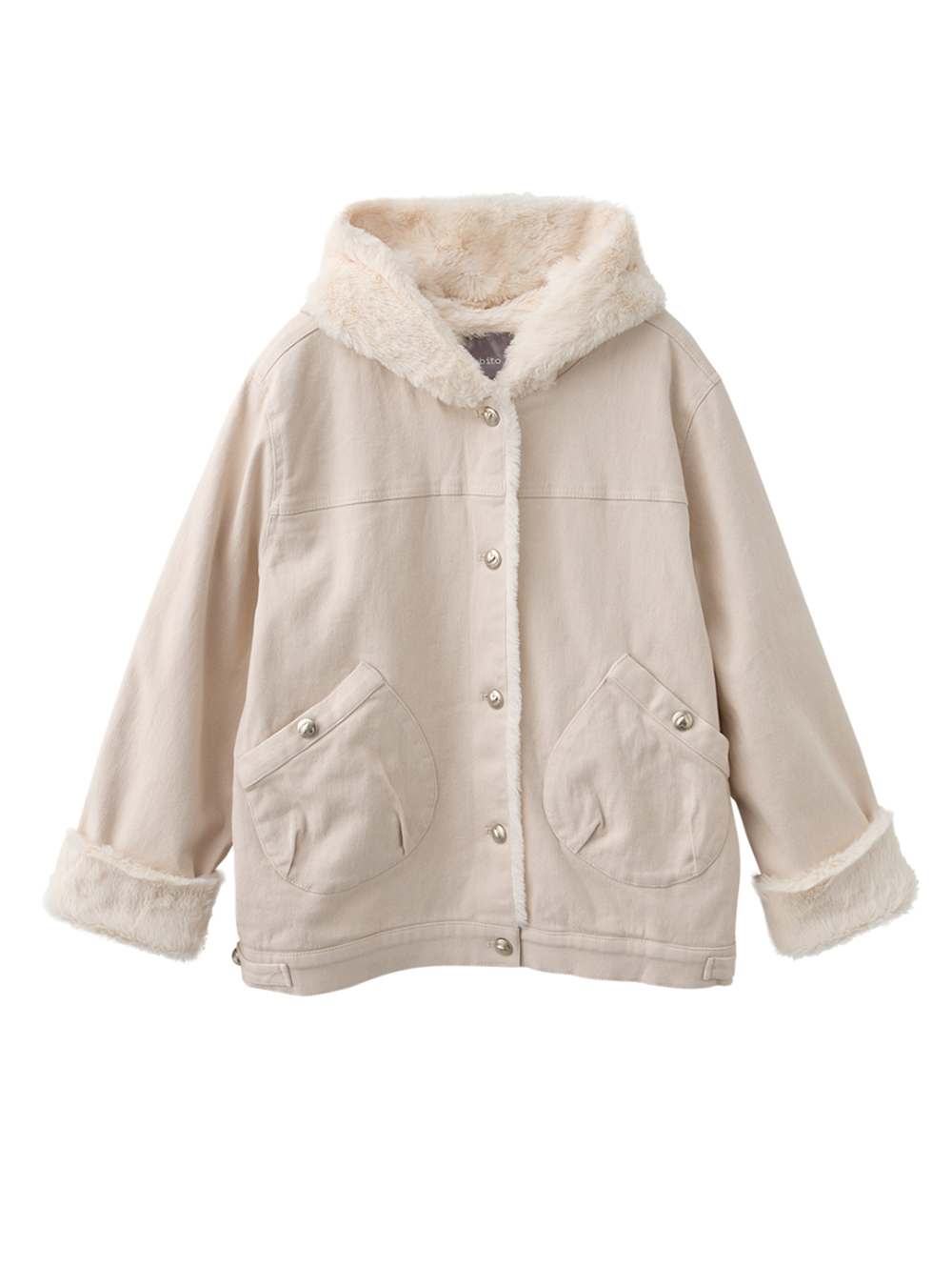 *外層牛仔面料設計 *絨毛內裡柔軟保暖親膚 *前貼口袋造型 *寬鬆版型