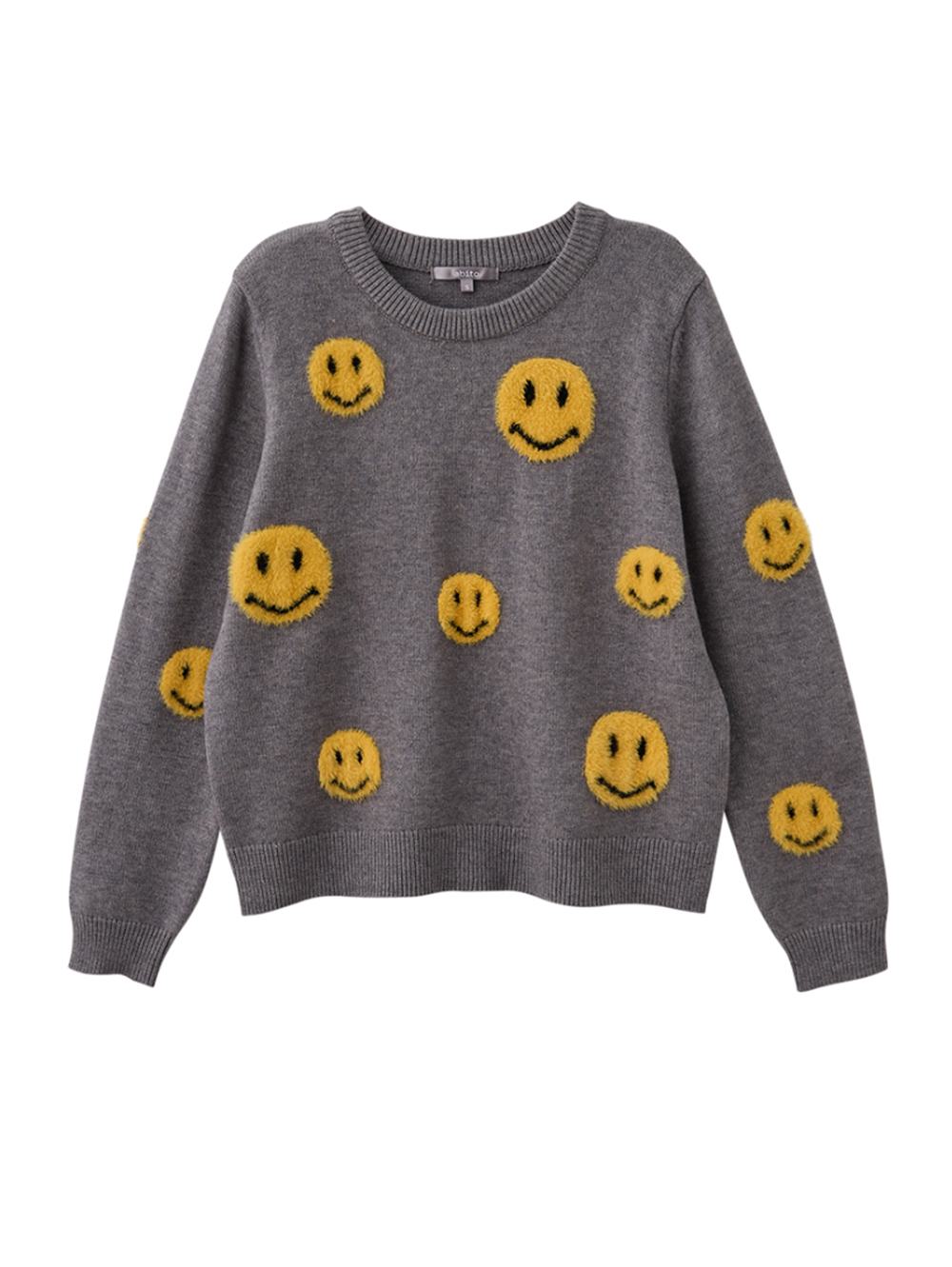 *絨毛笑臉造型 *寬鬆落肩版型 *羅紋加強領口、袖口彈性與耐用 *舒適彈性針織面料,柔軟親膚