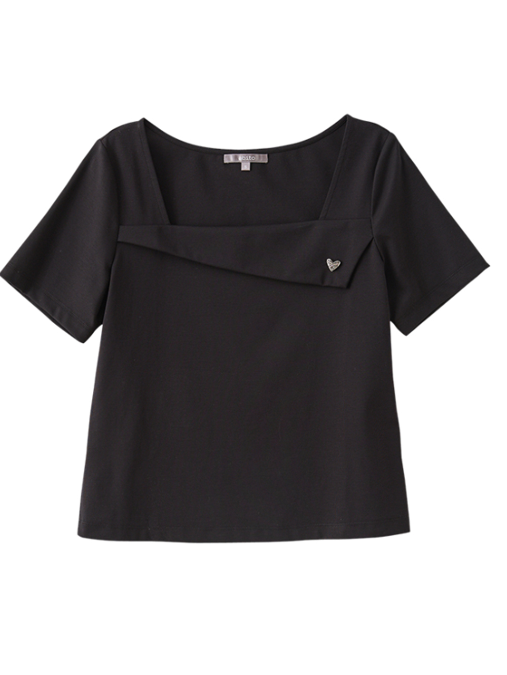 *質感方領剪裁,修飾鎖骨線條 *精緻金屬愛心裝飾細節 *柔軟親膚彈性棉質面料 *優雅氣質日常百搭款