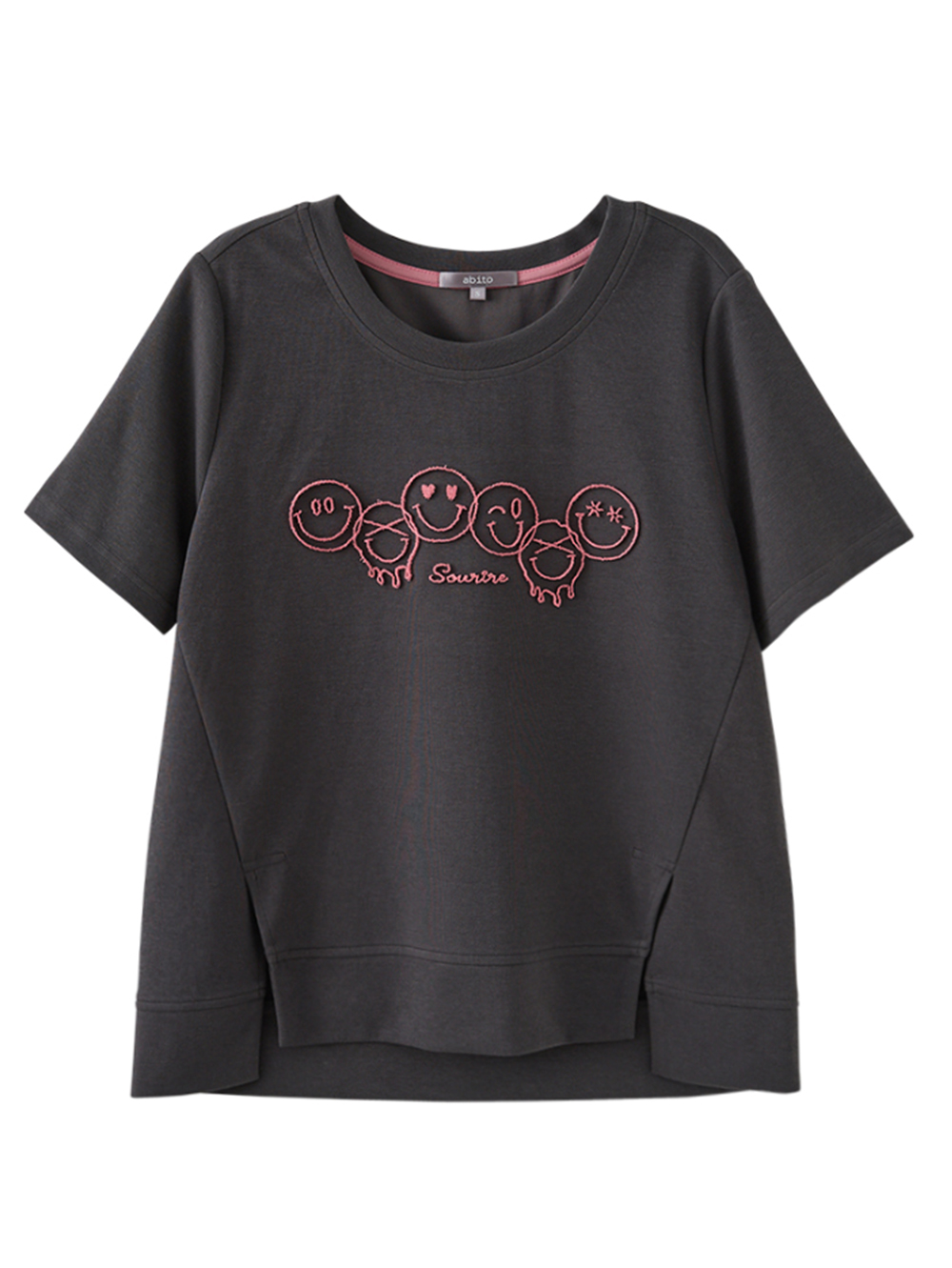 *圓領設計修飾頸部線條 *特殊笑臉牙刷繡工藝 *寬鬆休閒版型 *適合日常休閒穿搭