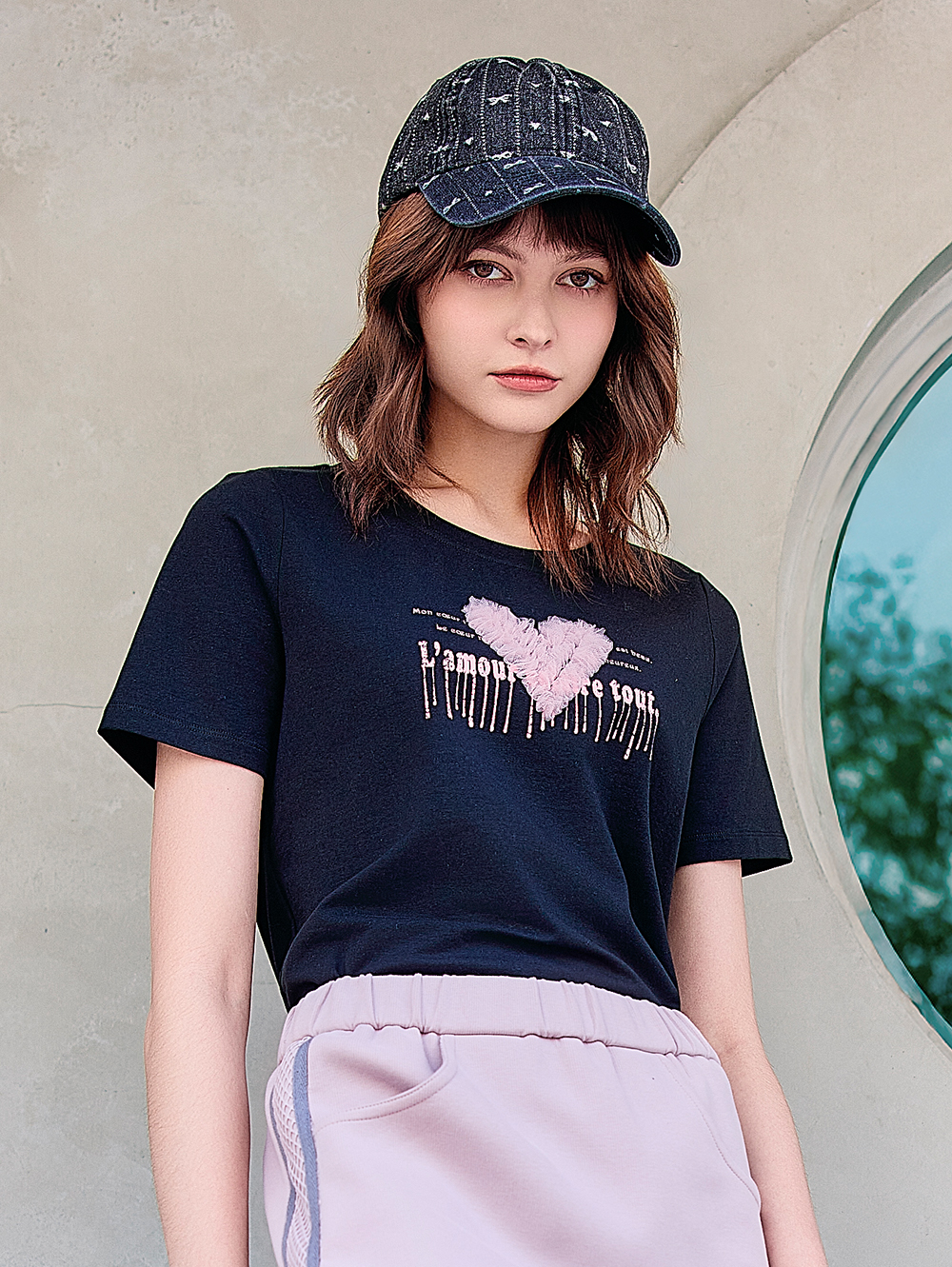 *胸前立體愛心裝飾設計 *版型修飾線條不貼身 *適合日常休閒穿搭 *棉質面料柔軟親膚